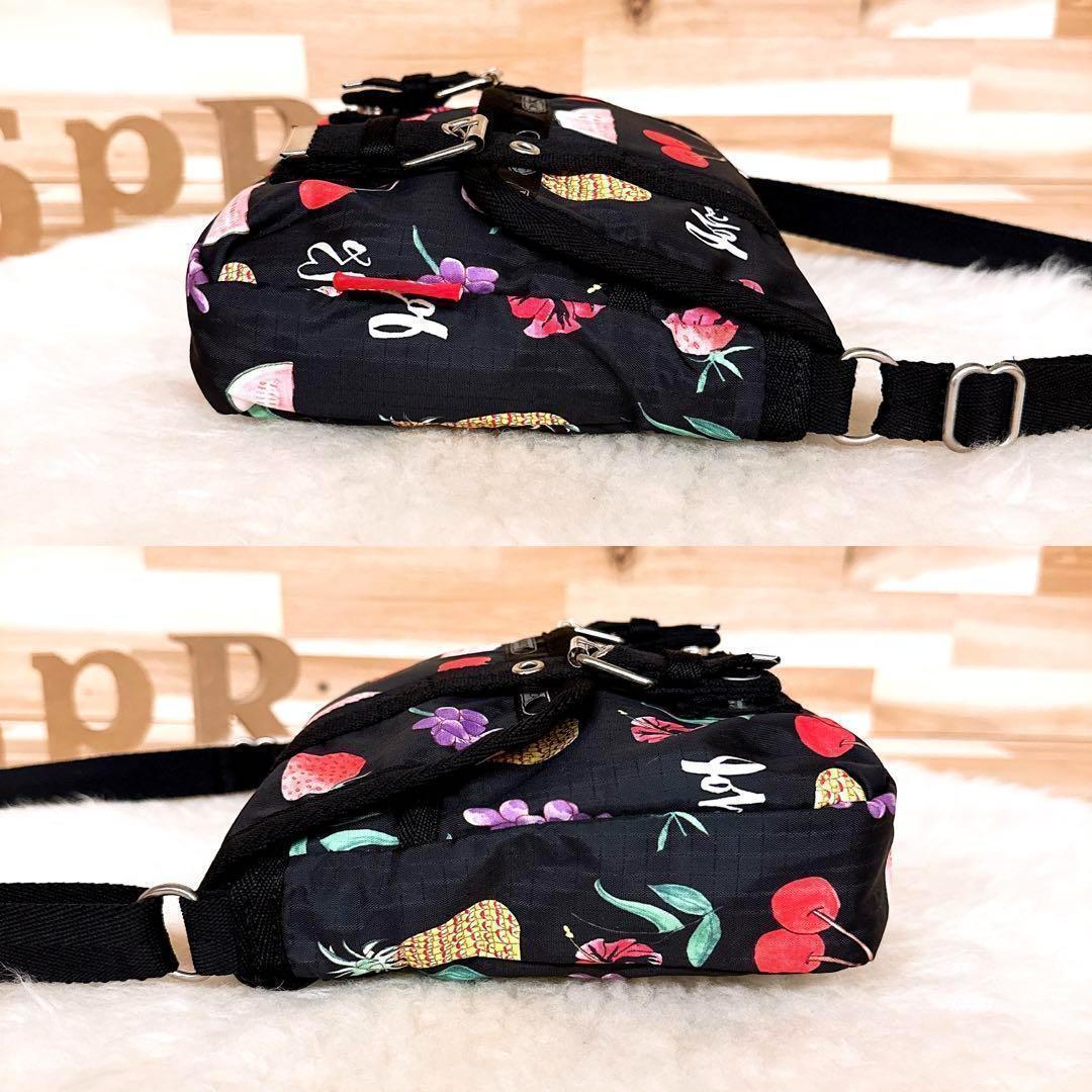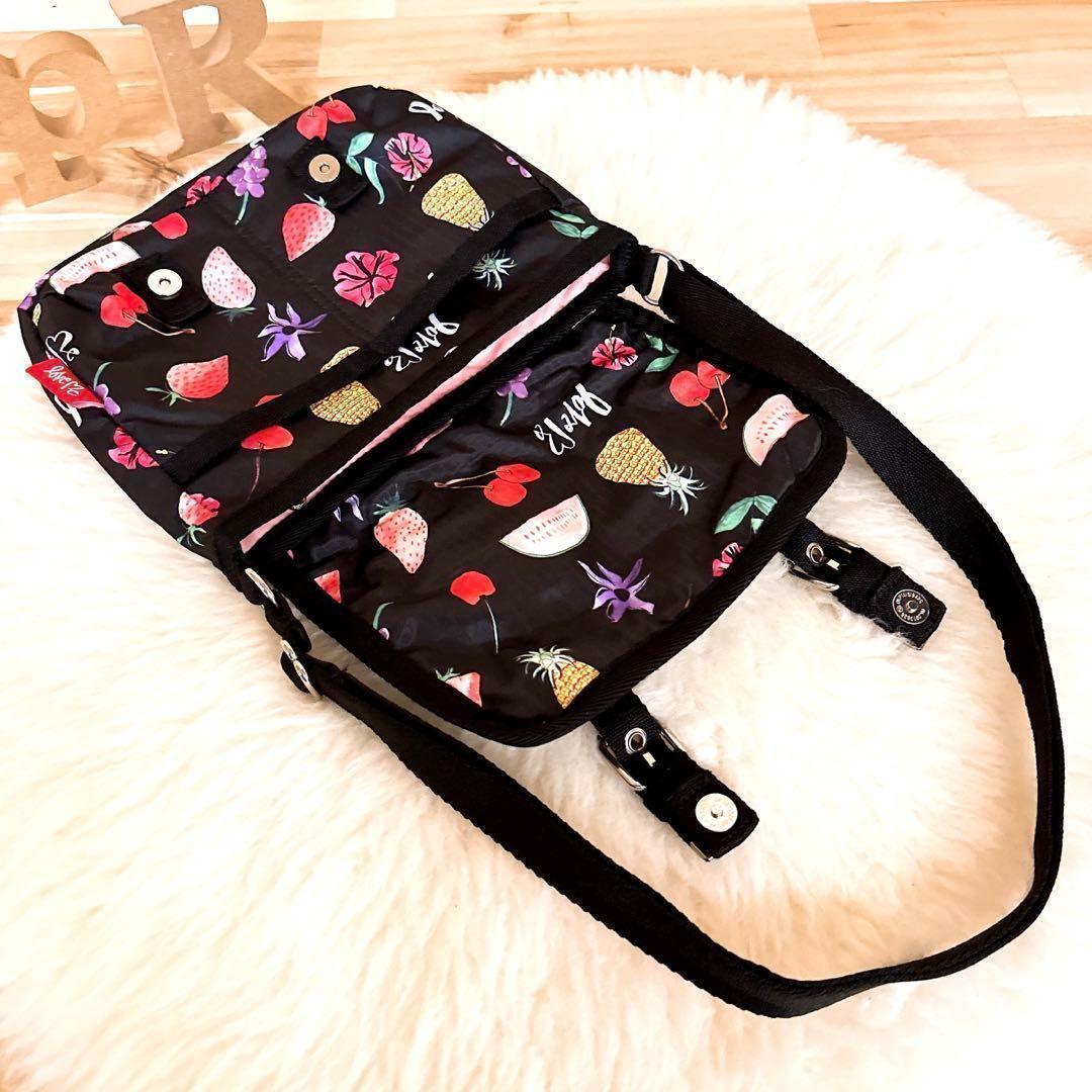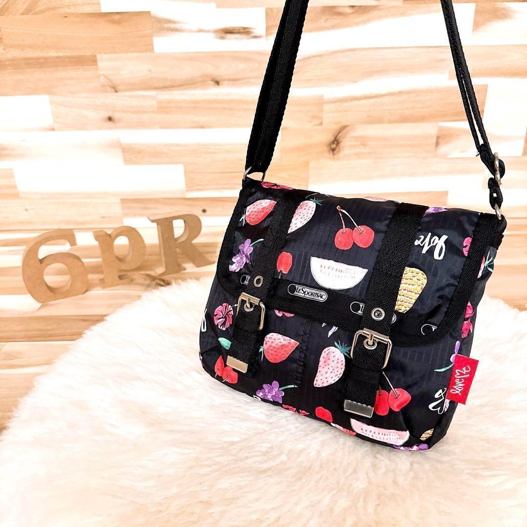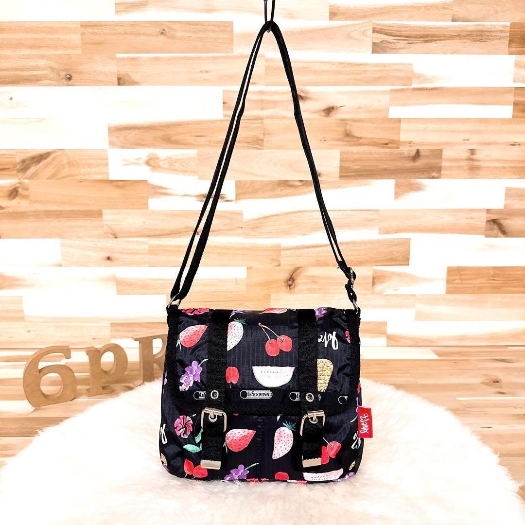 フロントにはさくらんぼ、いちごにスイカなど、カラフルでとても可愛いお花や果物たちが全体に描かれた大人オシャレなLeSportsac × Curtis Kuligコラボのショルダーバッグです。日本未発売のためオークションやフリマでもなかなか見かけない稀少性の高いお品です。