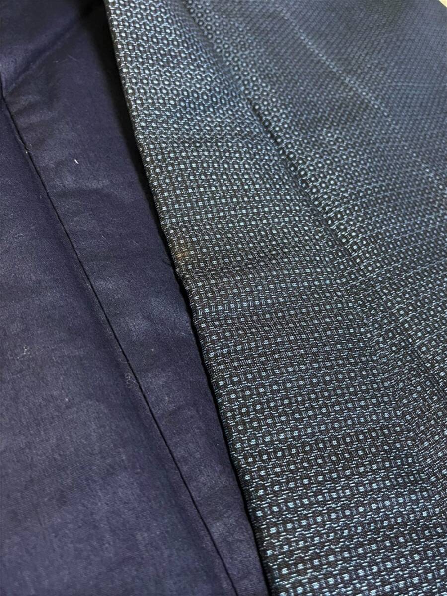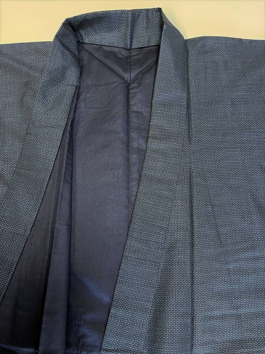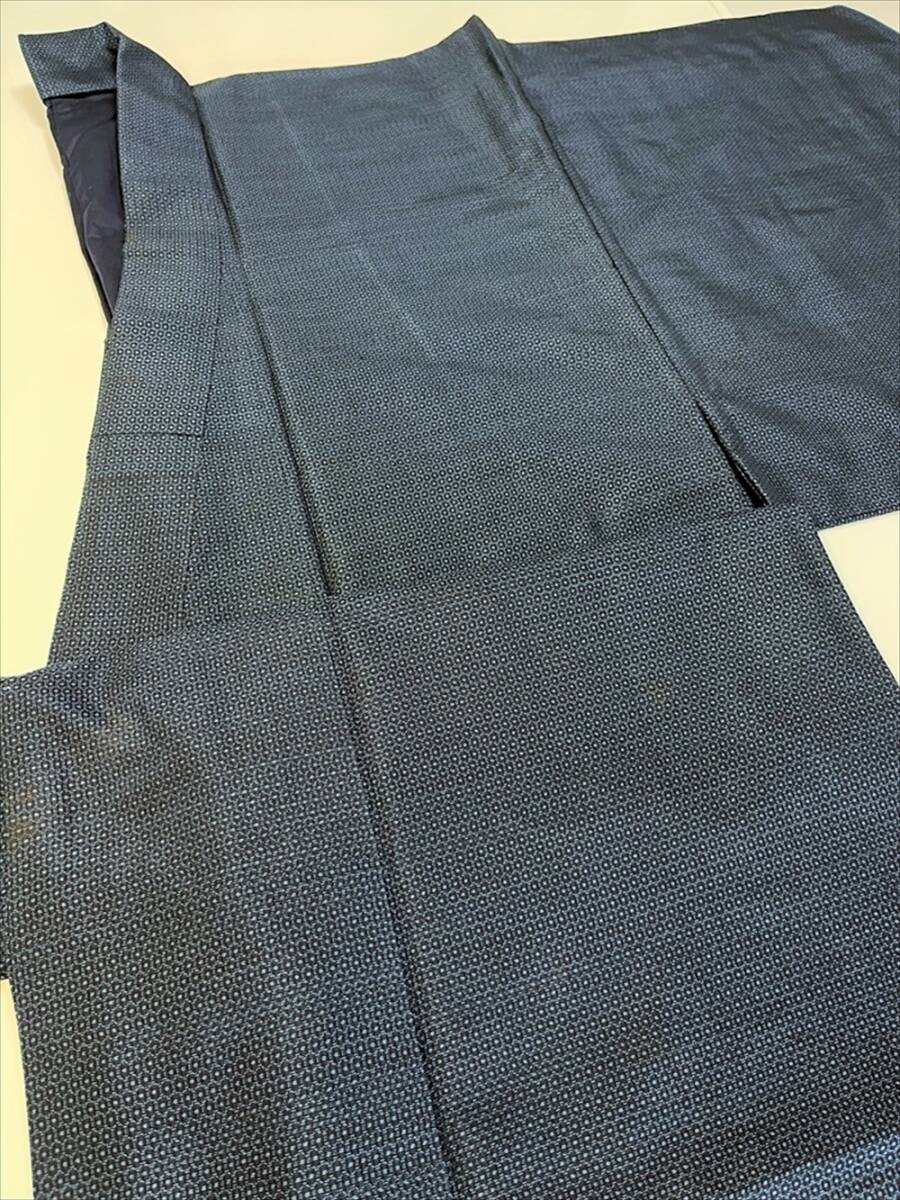 リサイクル着物 男物 アンサンブル 紺系 長襦袢付き リメイク 素材
