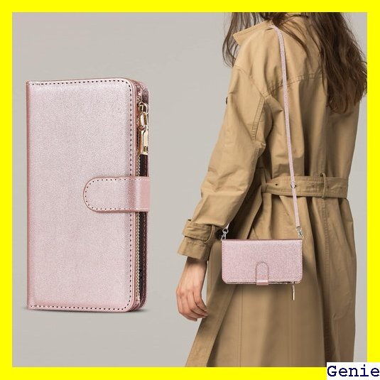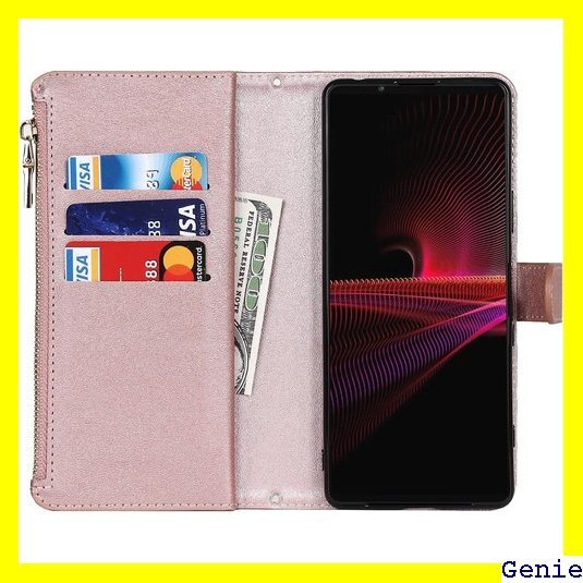 Eastwave for Sony Xperia 1 III SO-51B / SOG03 ケース for Sony Xperia 1iii 縄掛けケース 手帳型 財布型 ICカード コインポケット ストラップ付き カード 収納 小銭入れ ファスナーポケット付き PUレザー 6色 ピンク 4