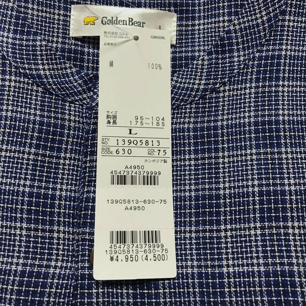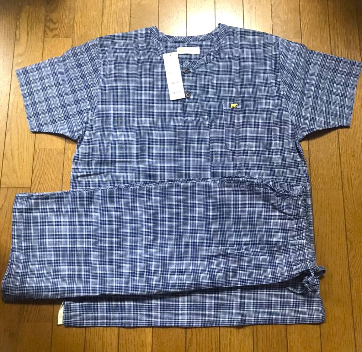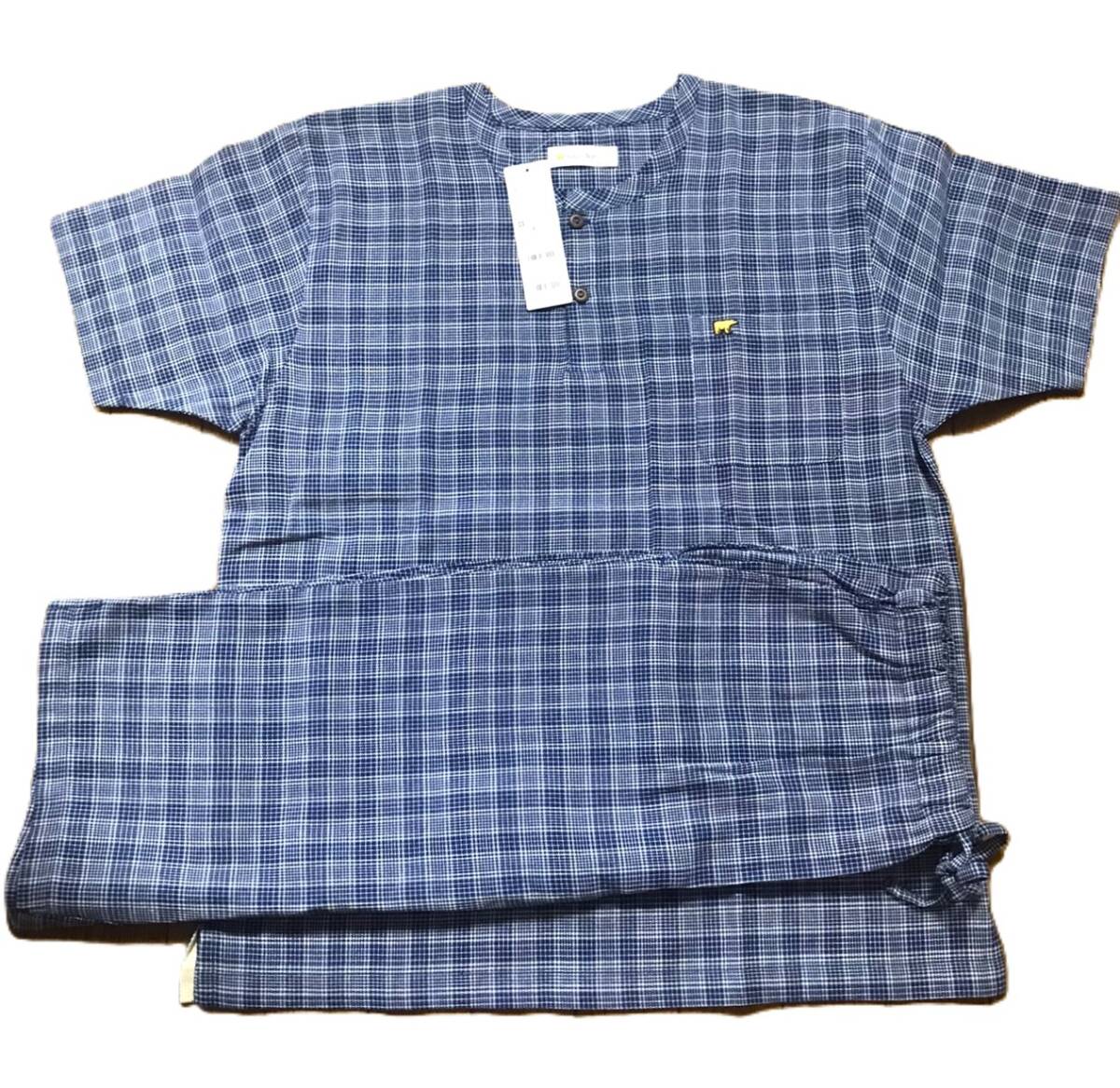 新品 タグ付き ゴールデンベア パジャマ 上下セット 半袖 メンズL 綿100% チェック柄 ネイビー