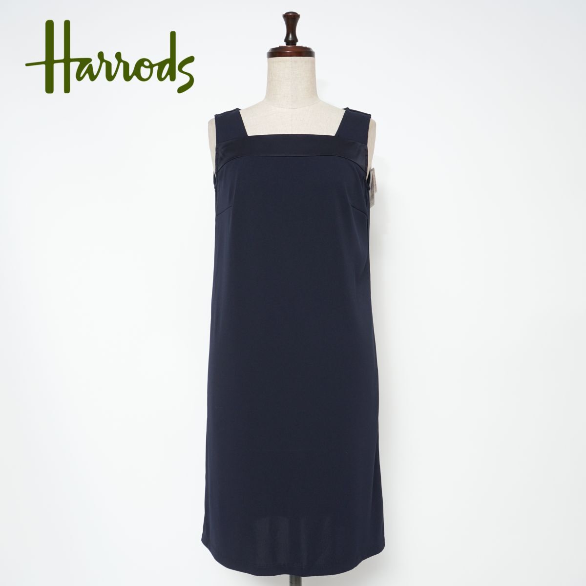 新品未使用タグ付 Harrods ハロッズ スクエアネックノースリーブワンピース レディース ネイビー 紺 サイズ1*BD88