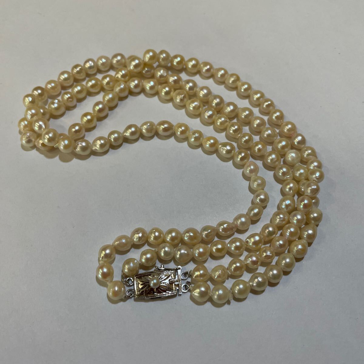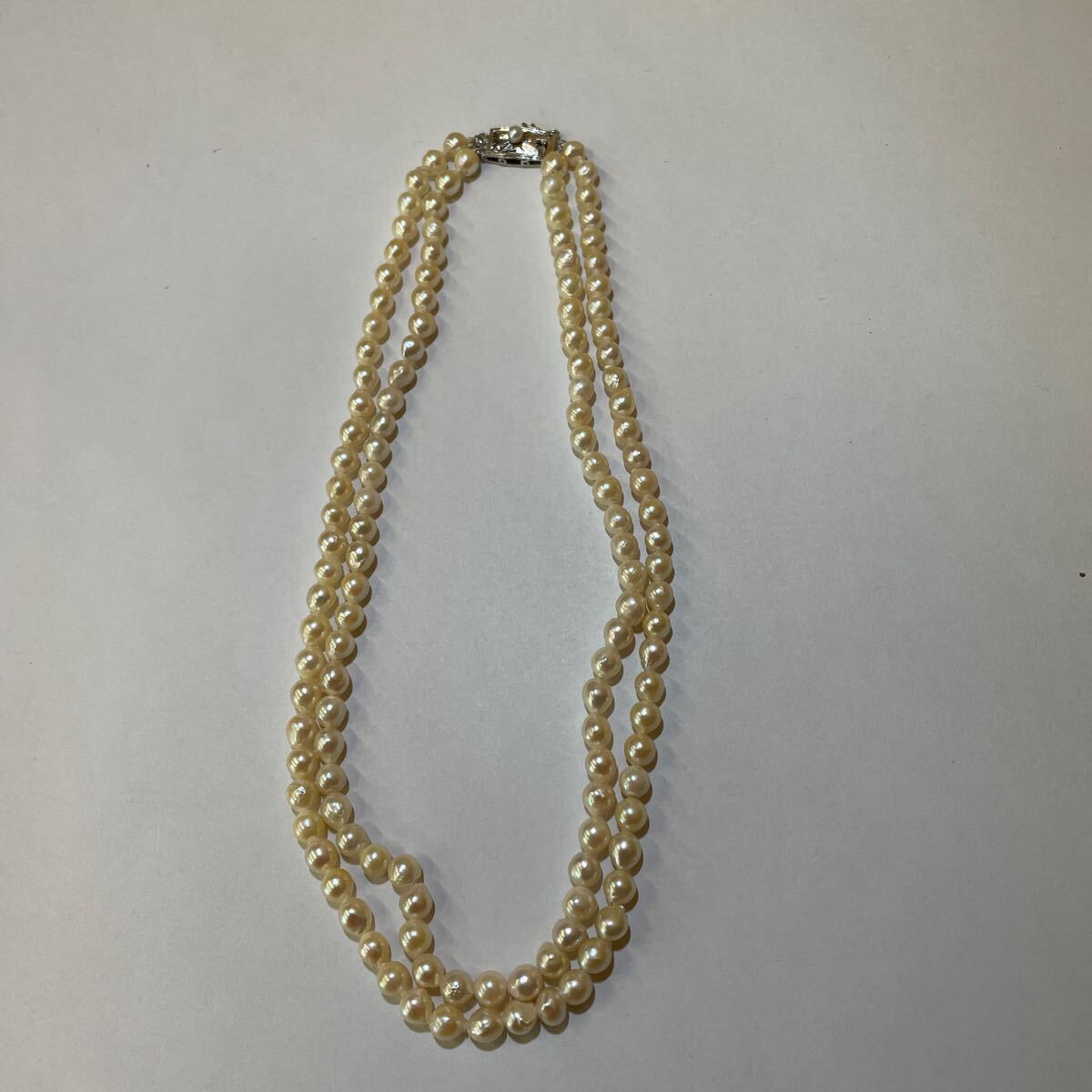 パール 真珠 2連 SILVER 刻印あり ネックレス アクセサリー チョーカー ベビーパール