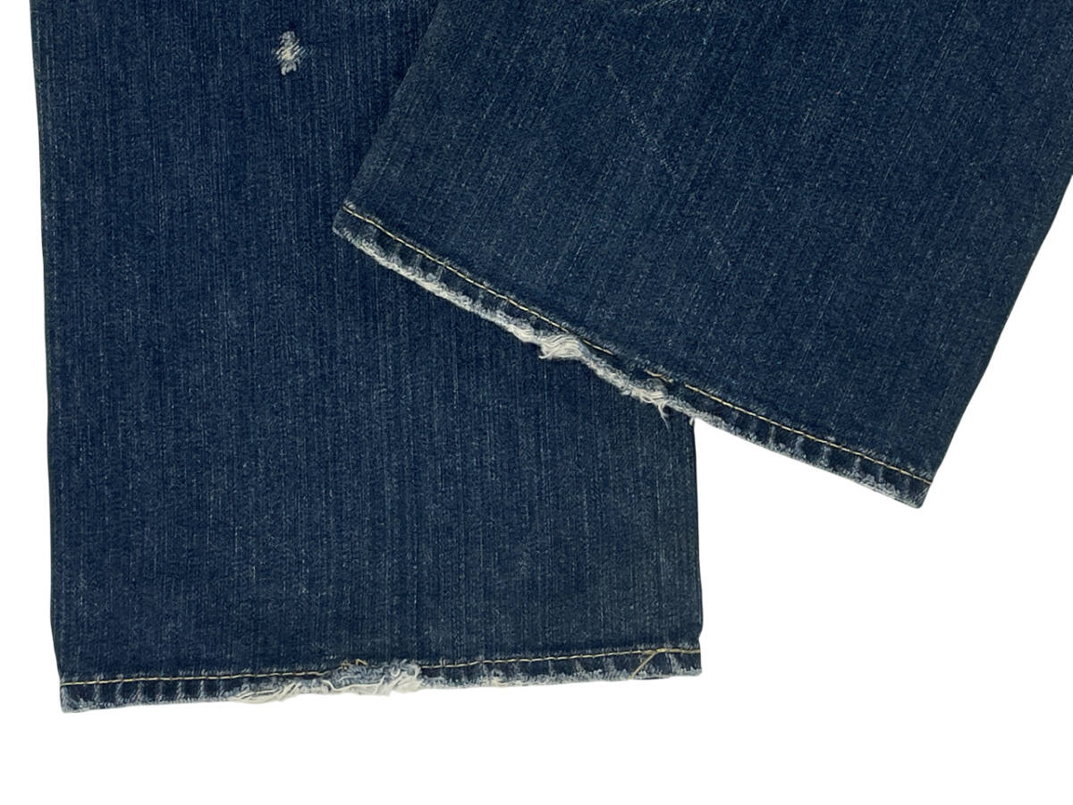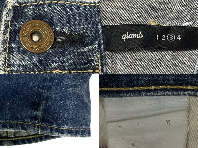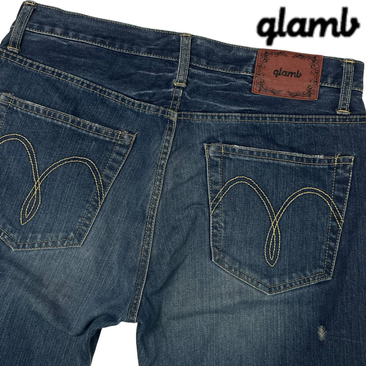 ブランド: glamb 型 番 :不明 カラー :インディゴ 状 態 :USED glamb ストレート デニムパンツ です。 ヒゲ、ハチノスと履きこんだアジのあるデニムです。微ダメージ加工が施されたカッコ良いパンツです。 内タグ文字消えの為サイズは実寸表記となります。また、スソに小さな割れが有ります。 履きこんだカッコ良いジーンズです。お探しの方お勧めの1本です。 ■サイズ:製品表記 実寸 W33相当 ■サイズ:実寸(平置き) ウエスト 42.0cm (×2=約84cm) W33相当 股下 76.5m 股上 27.5cm ワタリ 31.5cm すそ幅 23.0cm | ||