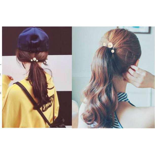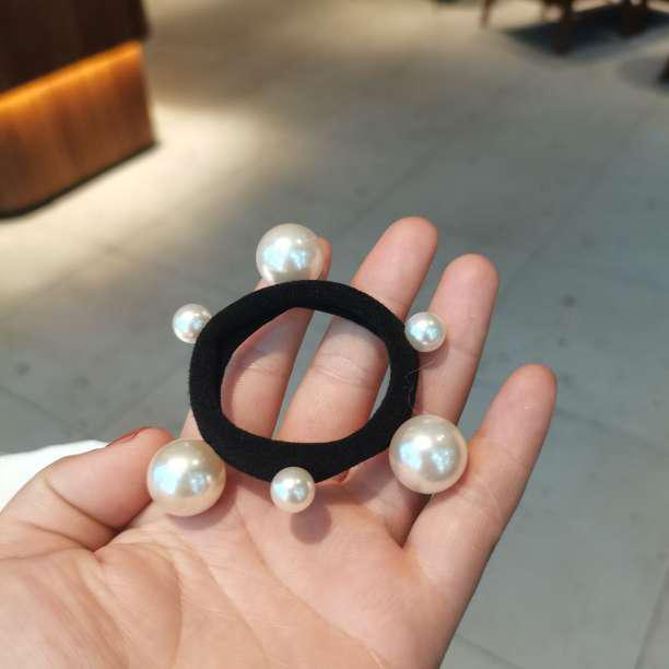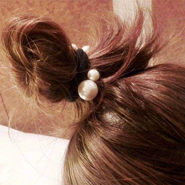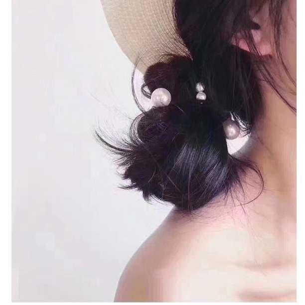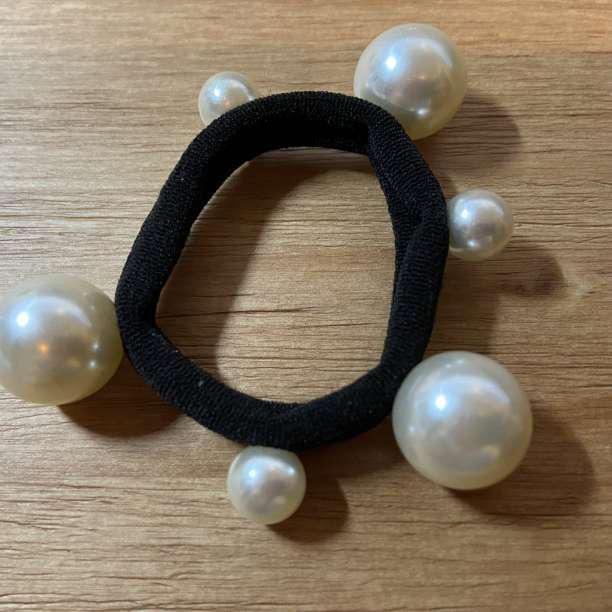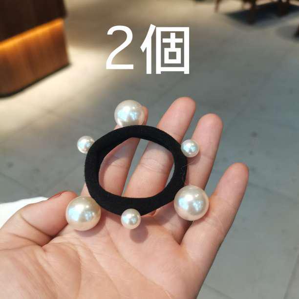 大小のフェイクパールが大人可愛いヘアゴム【2個セット】です。