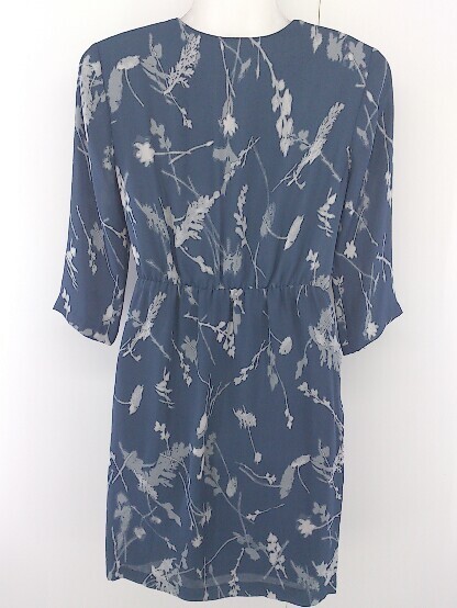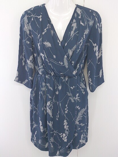 ◇ BANANA REPUBLIC バナナリパブリック 総柄 ウエストゴム 長袖 ミニ ワンピース サイズ0 ネイビー系 グレー レディース