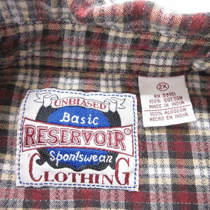 【商品名】 XL★古着 半袖 シャツ メンズ 00年代 00s 大きいサイズ ロング丈 コットン ボタンダウン エンジ他 チェック