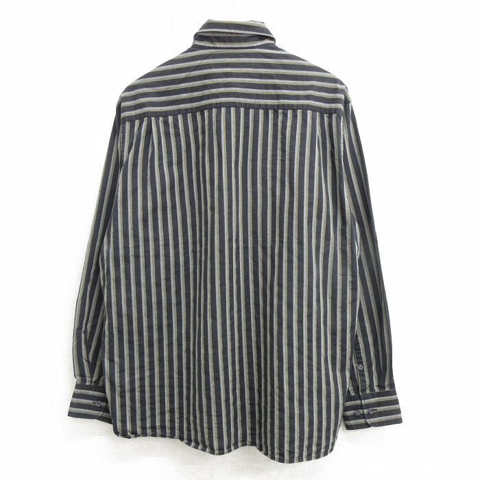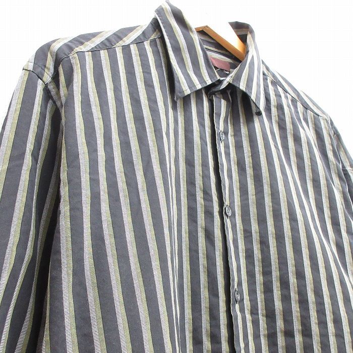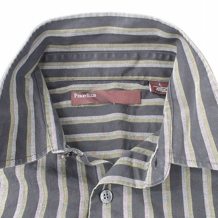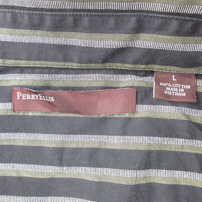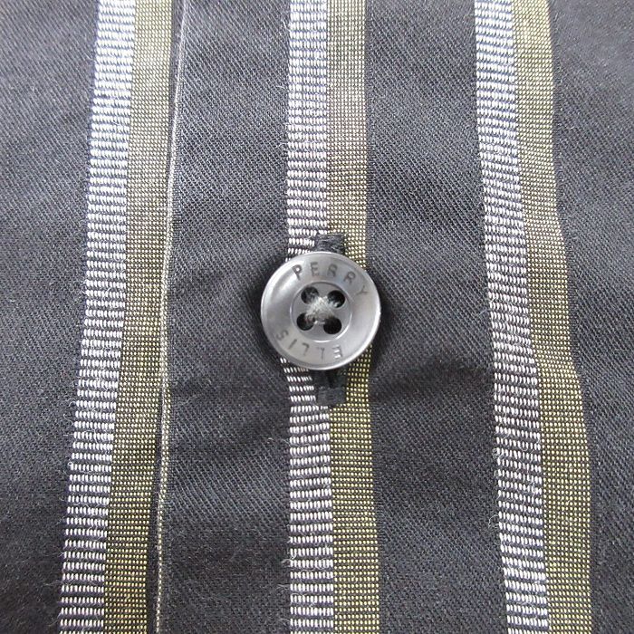 【商品名】 XL★古着 ペリーエリス 長袖 シャツ メンズ コットン 黒他 ストライプ