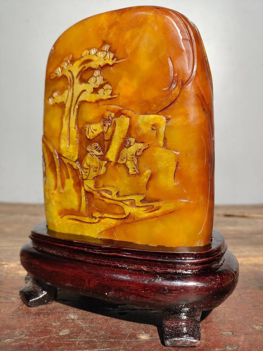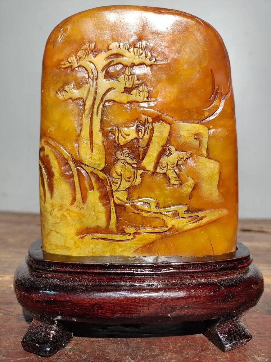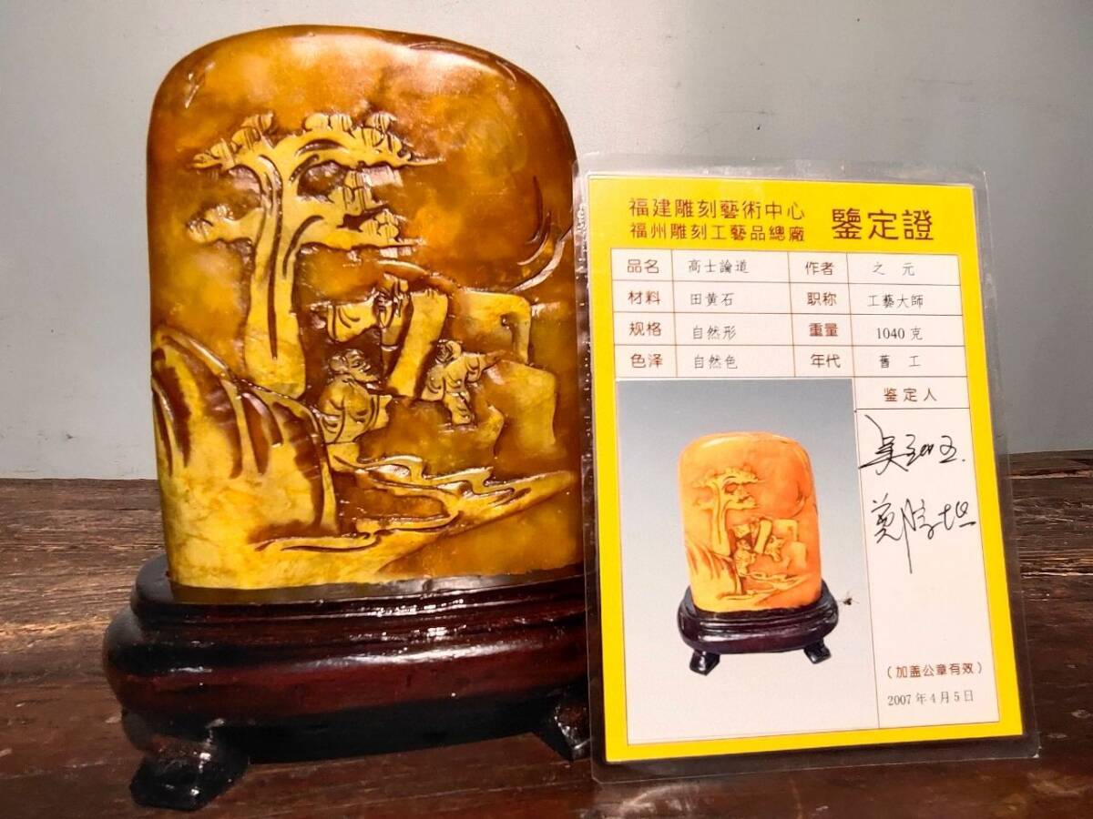 【超珍館蔵】寿山石 田黄石 細密彫 高士輪道紋印章 文房具 書道品 古賞物 古美術品 稀少珍蔵品
