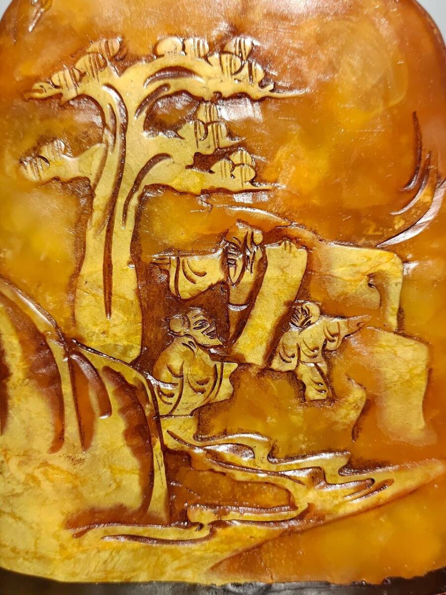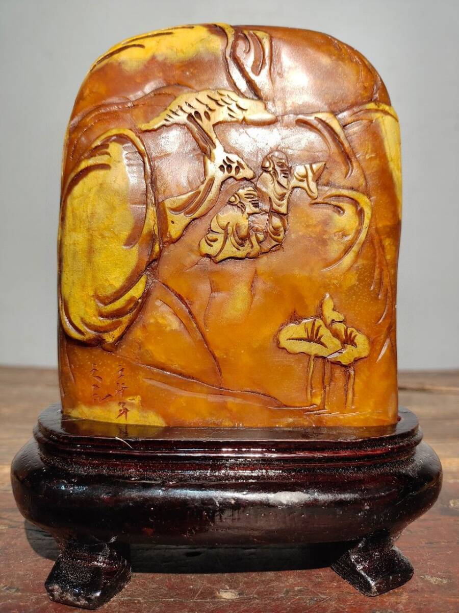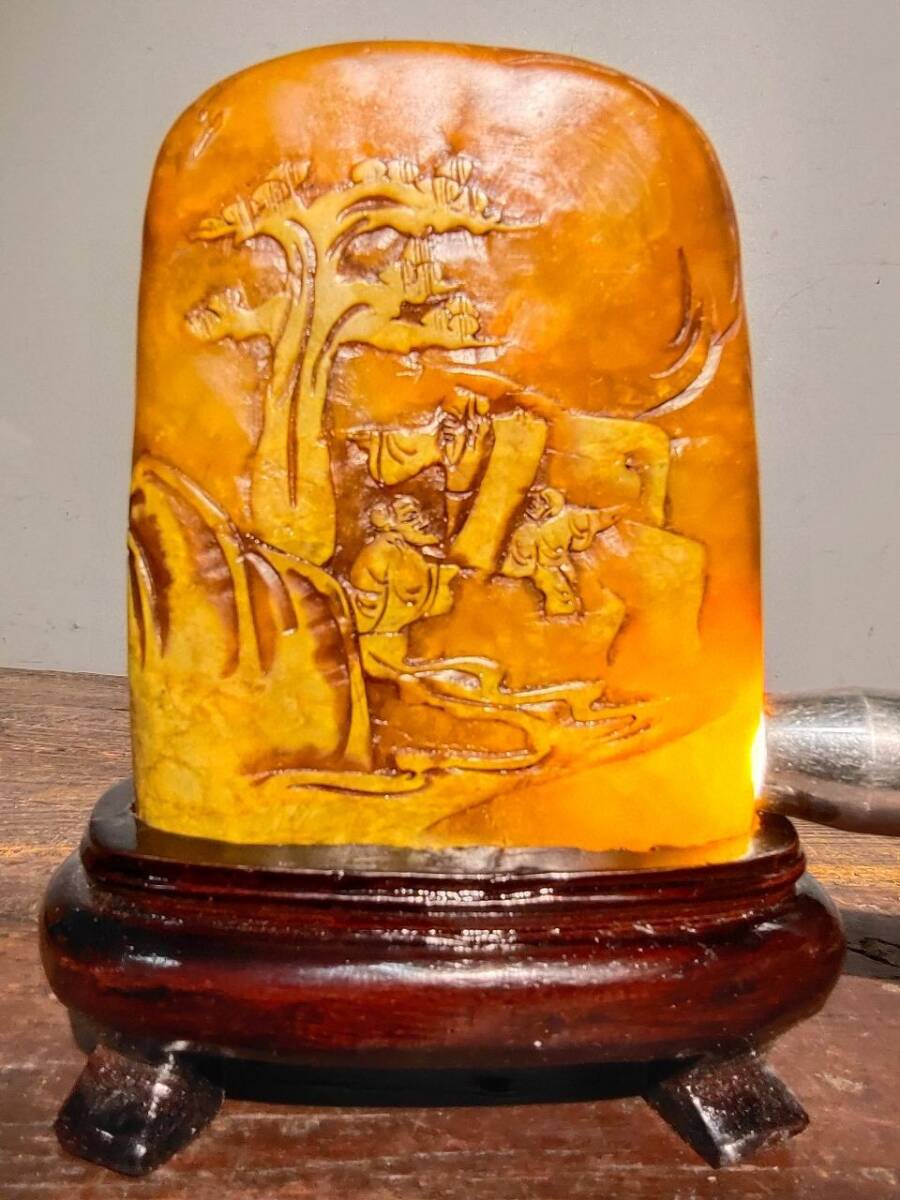 【超珍館蔵】寿山石 田黄石 細密彫 高士輪道紋印章 文房具 書道品 古賞物 古美術品 稀少珍蔵品