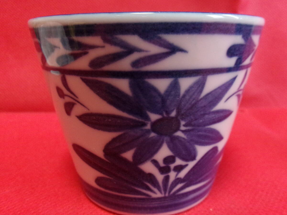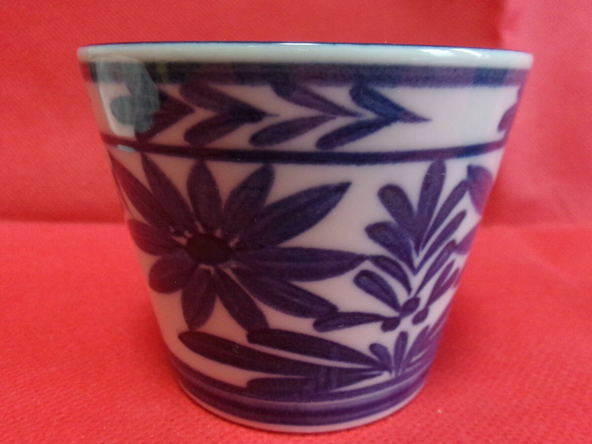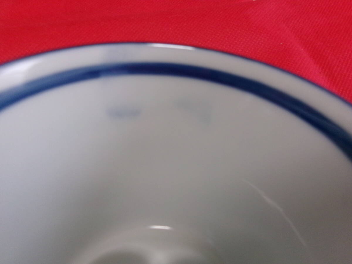 三峰作 そば猪口2個セット  口径約8.5  高さ約6.8  写真のように1個内側に染付の色がうすく付いているような感じです