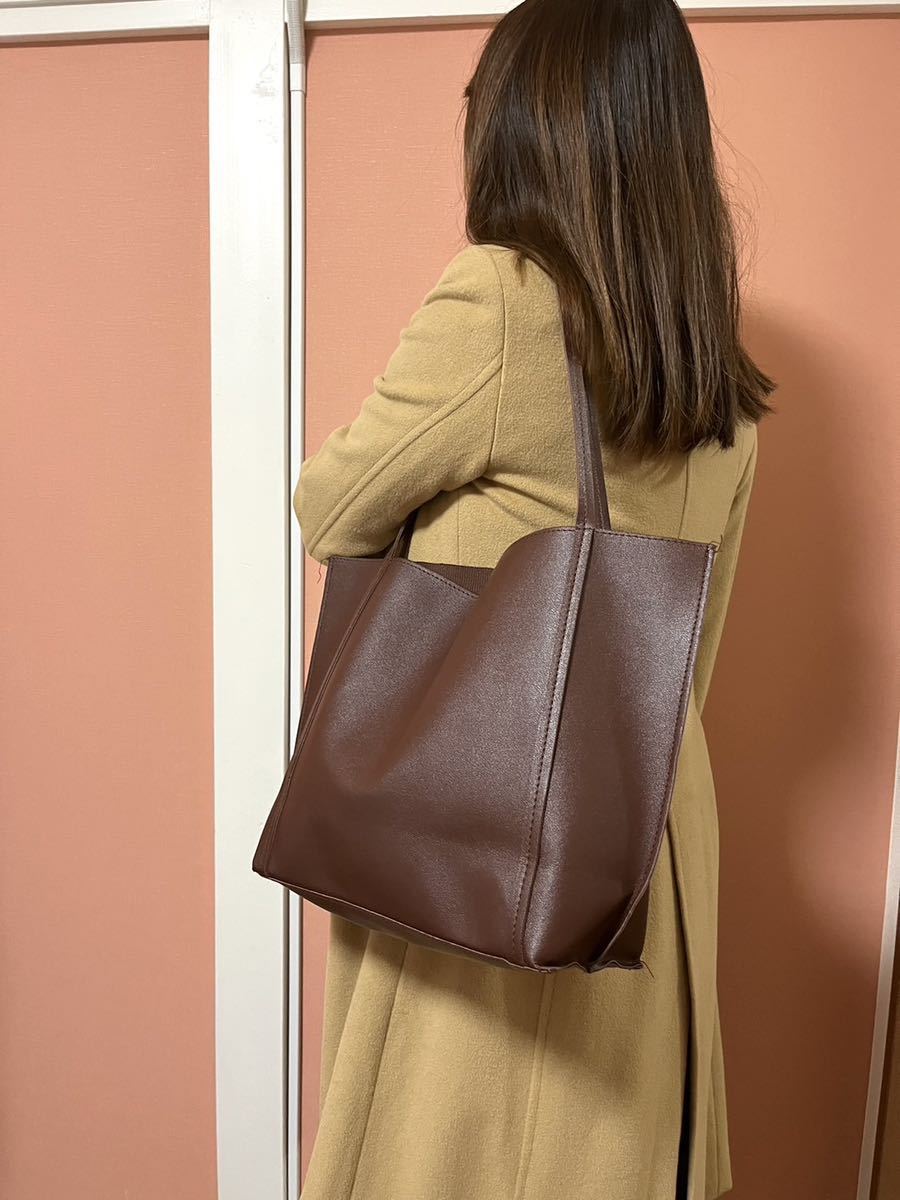 ショルダーバッグ ダークブラウン シンプル レディースバッグ ナチュラル おしゃれバッグ 通勤