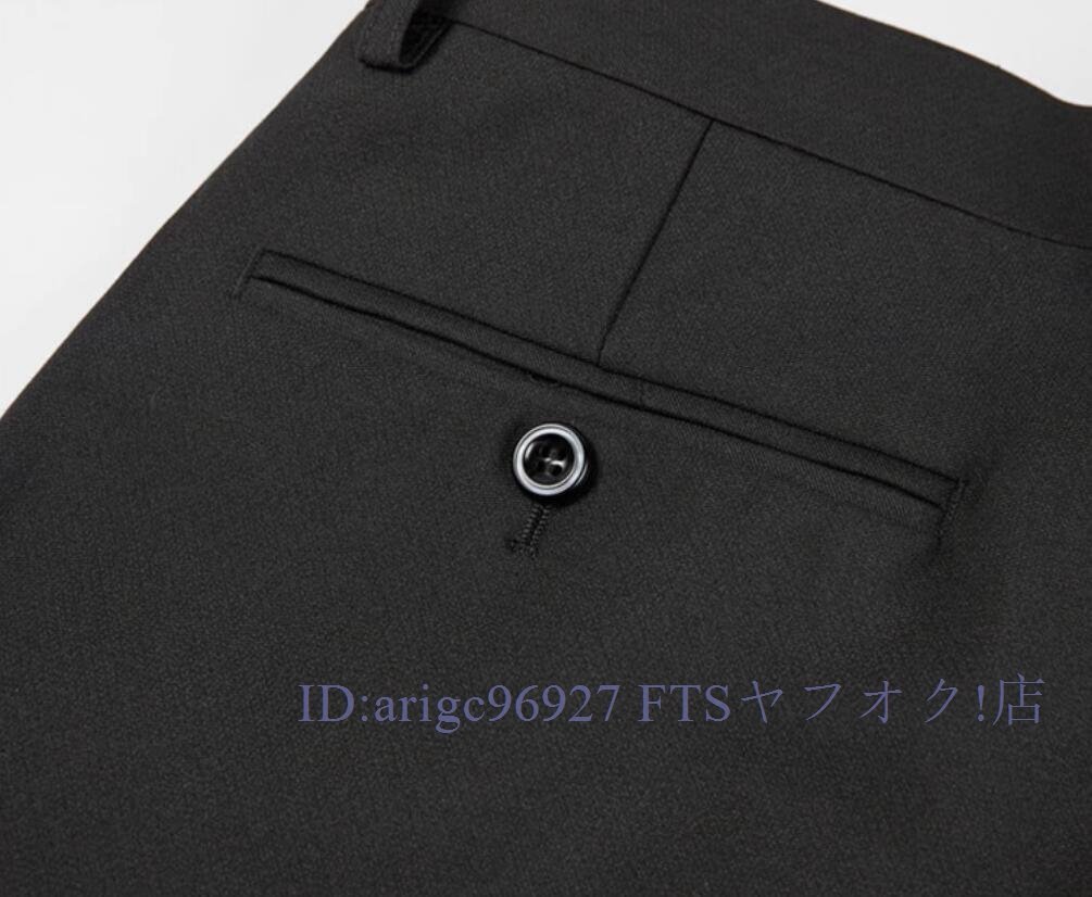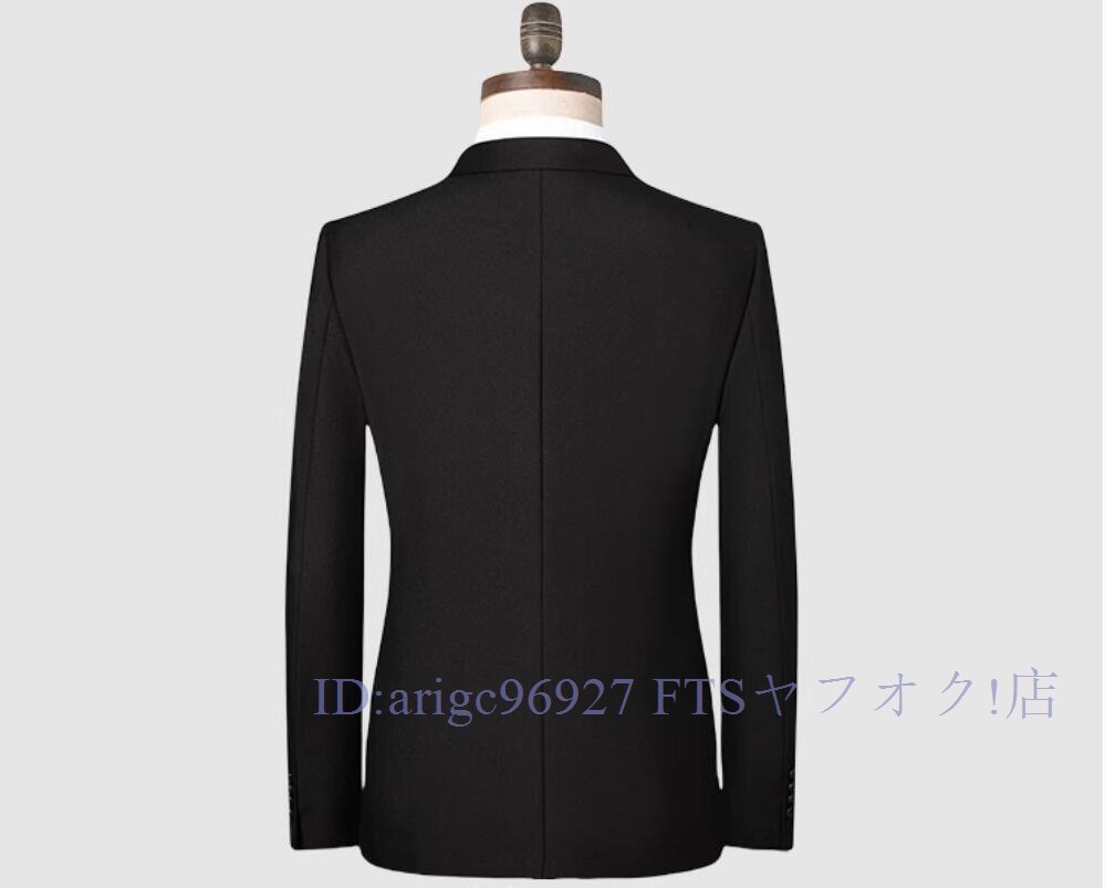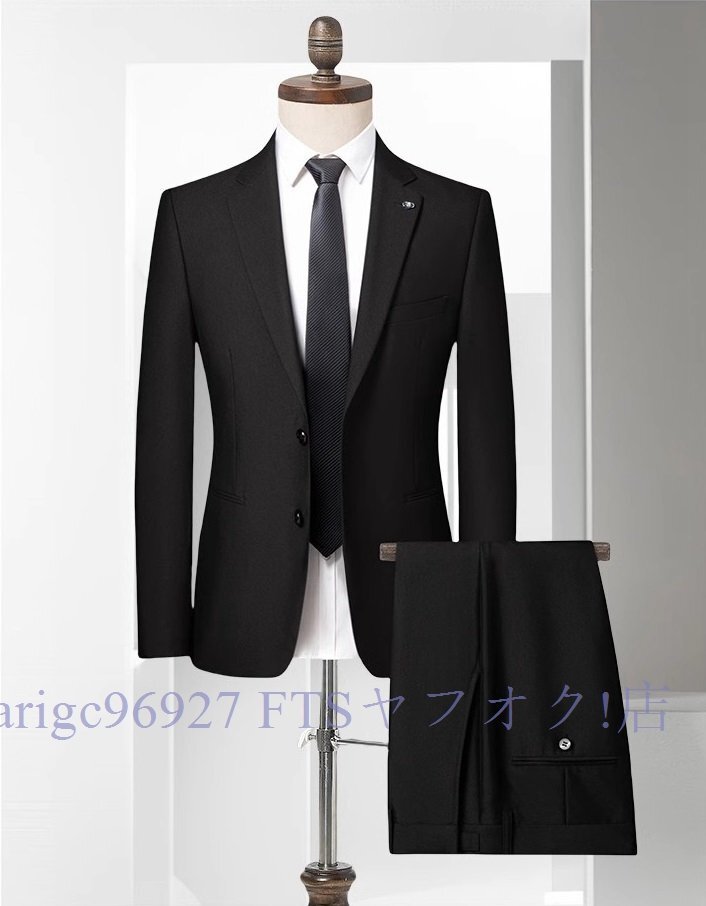 ★新品高品質 ウール混 シングルスーツ メンズ 中厚 ビジネス セットアップスーツ ウエスト伸縮有り パンツ スーツセット 無地 黒