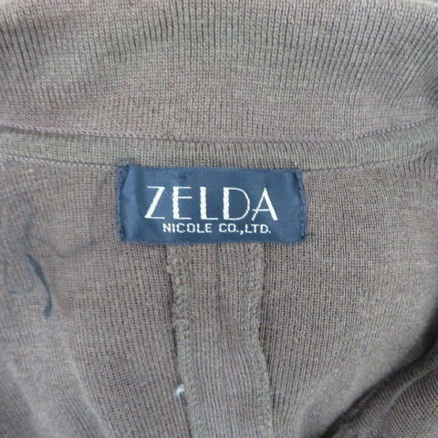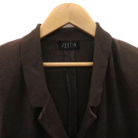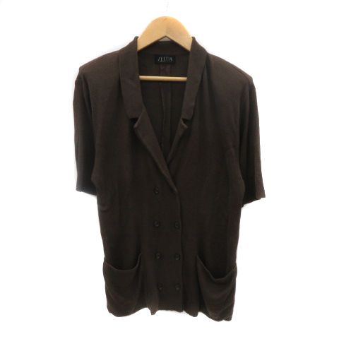 ゼルダ ZELDA ニコル カーディガン ミドル丈 オープンカラー 半袖 ダブルボタン シルク混 ブラウン /YK2 レディース