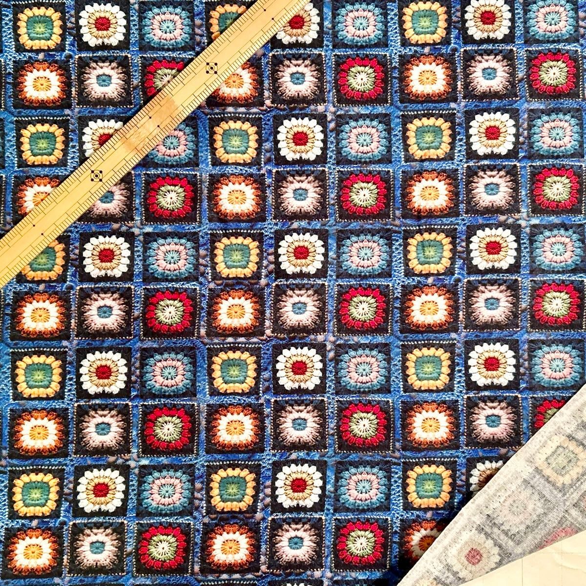 D60 3D立体プリント カラフル コットン100%生地 おばあちゃん柄