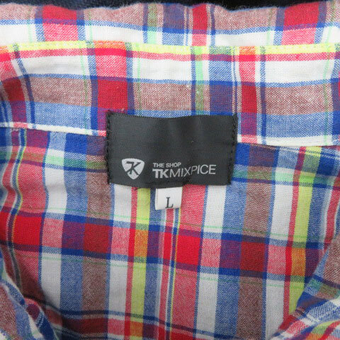 ティーケーミクスパイス タケオキクチ THE SHOP TK MIXPICE ポロシャツ ポロカラー 半袖 チェック柄 L マルチカラー 紺 レディース