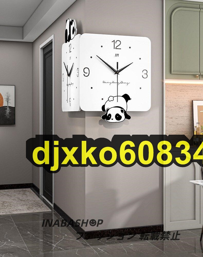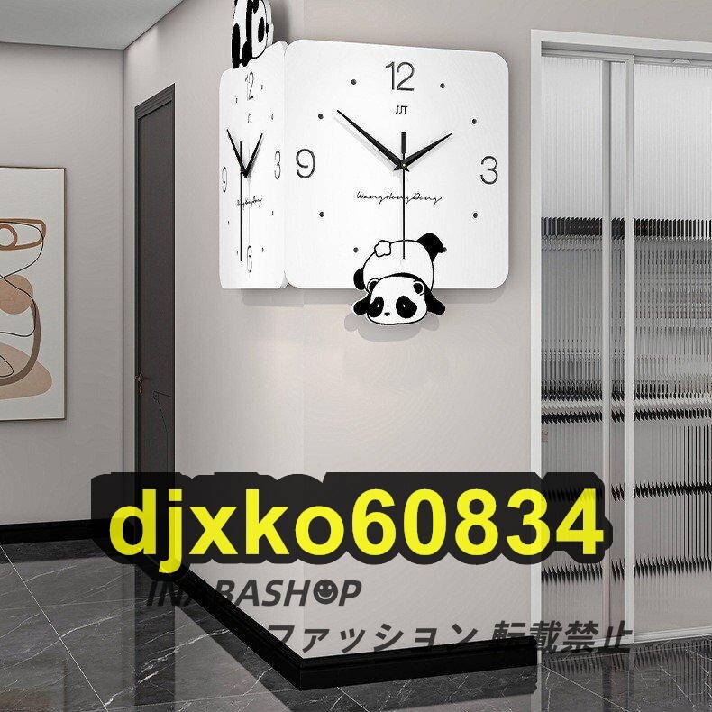 直角掛け時計 90度転角 掛け時計 大きい 発散デザイン パンダ 黒猫 特大 時計 掛け時計 キラキラ インテリア 装飾品 リビング 開店祝い