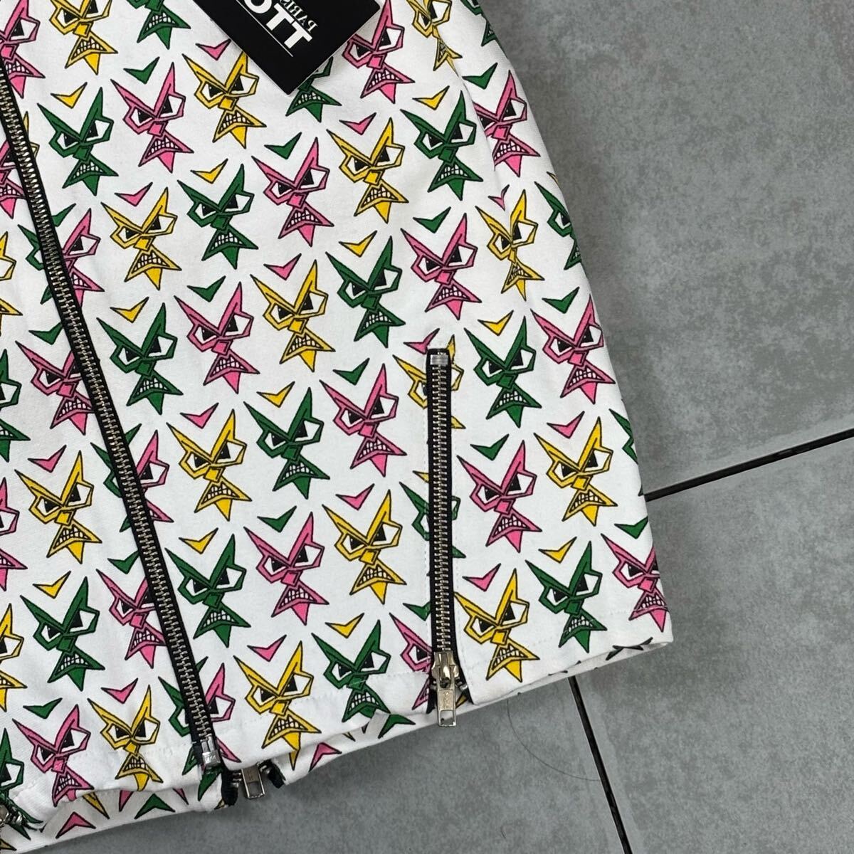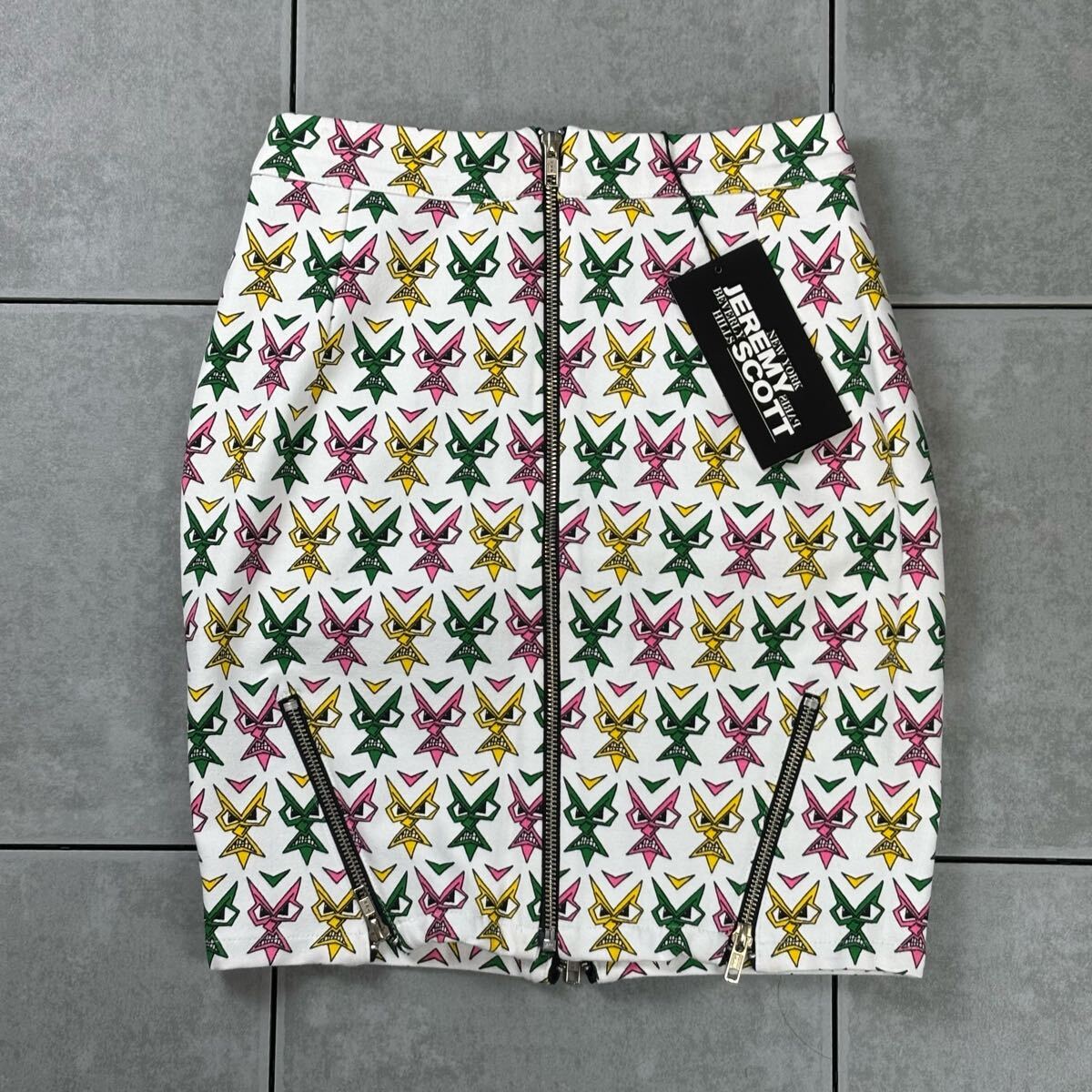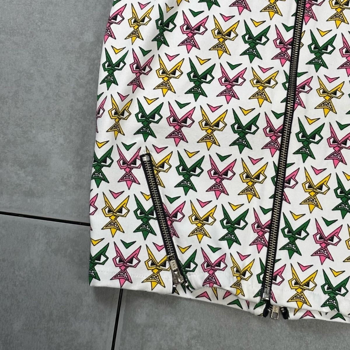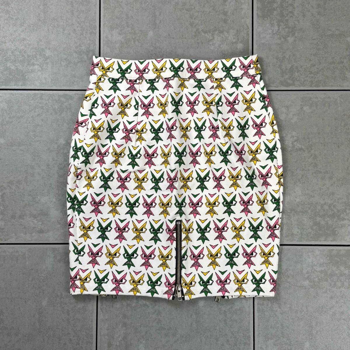ジップギミックとジェレミーらしいポップアートの総柄スカートです。