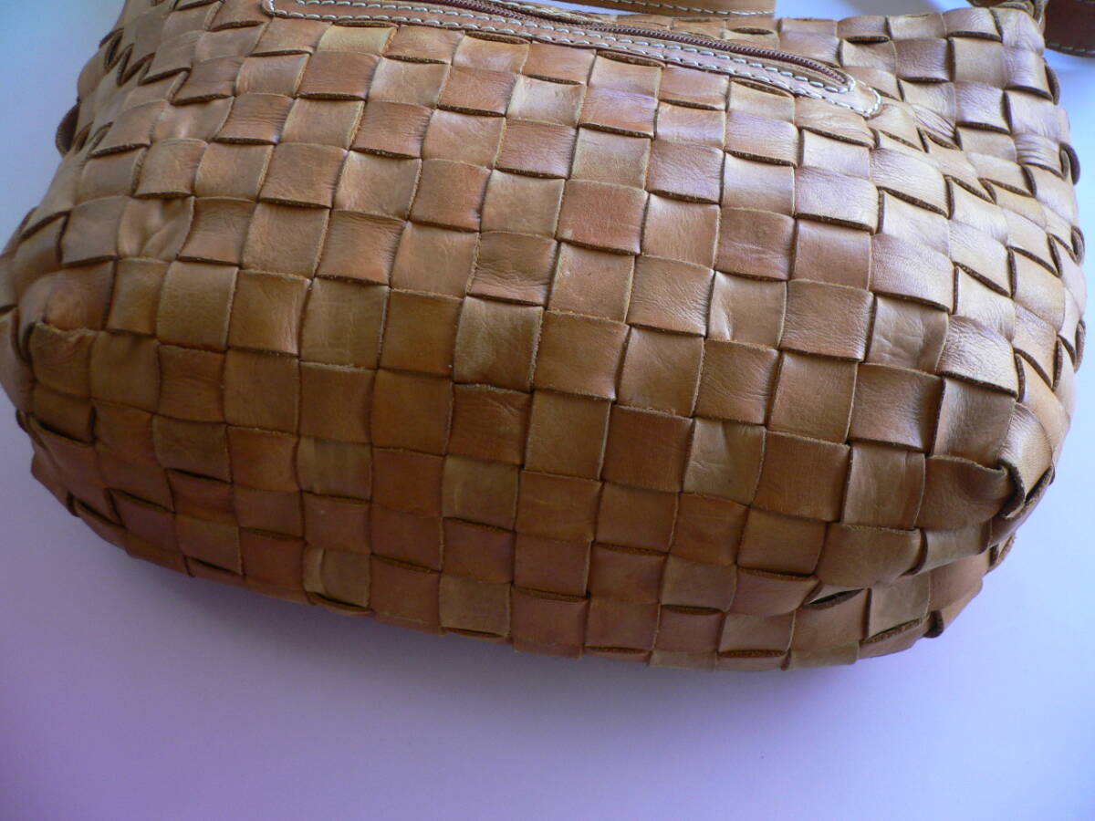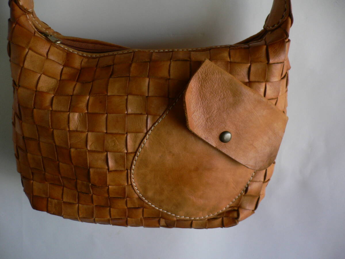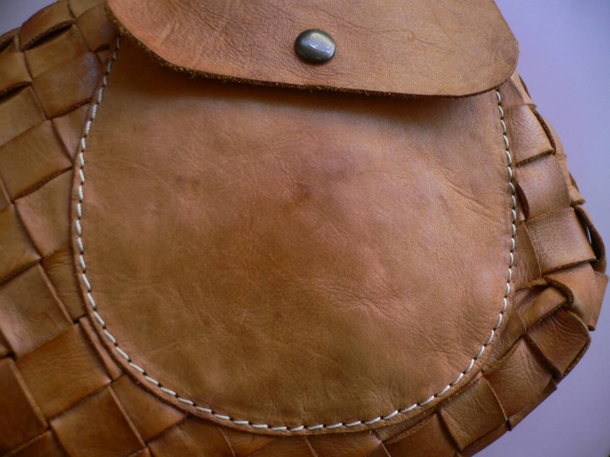 職人の手により、牛革製のメッシュを格子状に11本手編みで縫製しています。