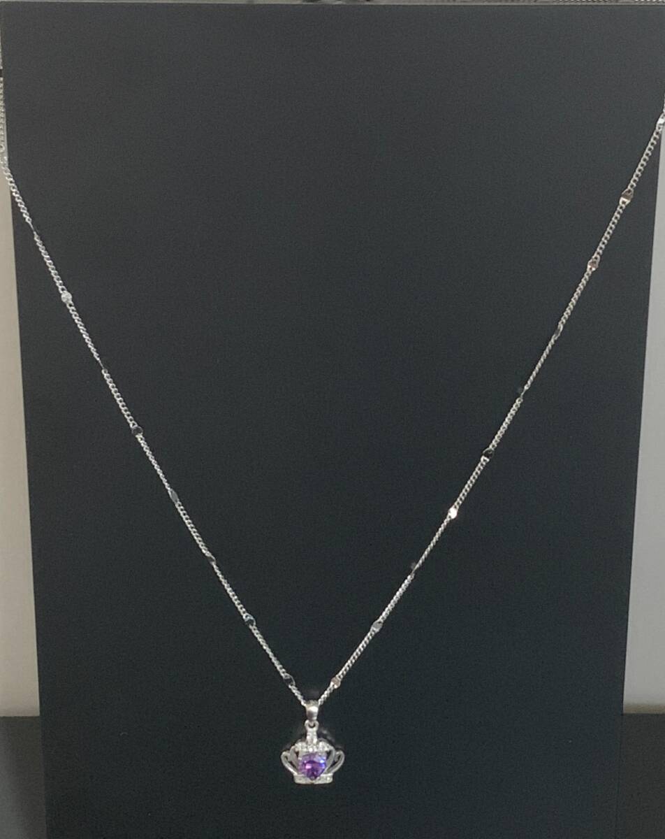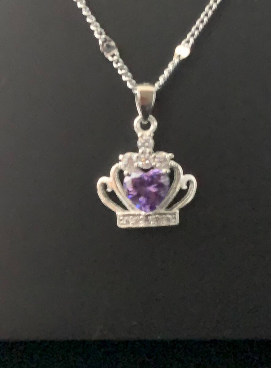 No 481 S925 シルバーネックレス silver 王冠 紫ダイヤ ジルコニア パープル ハート | |
