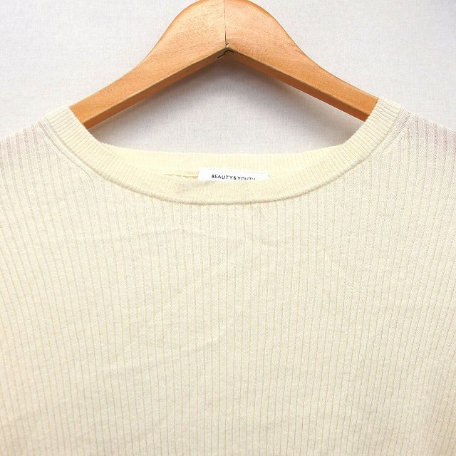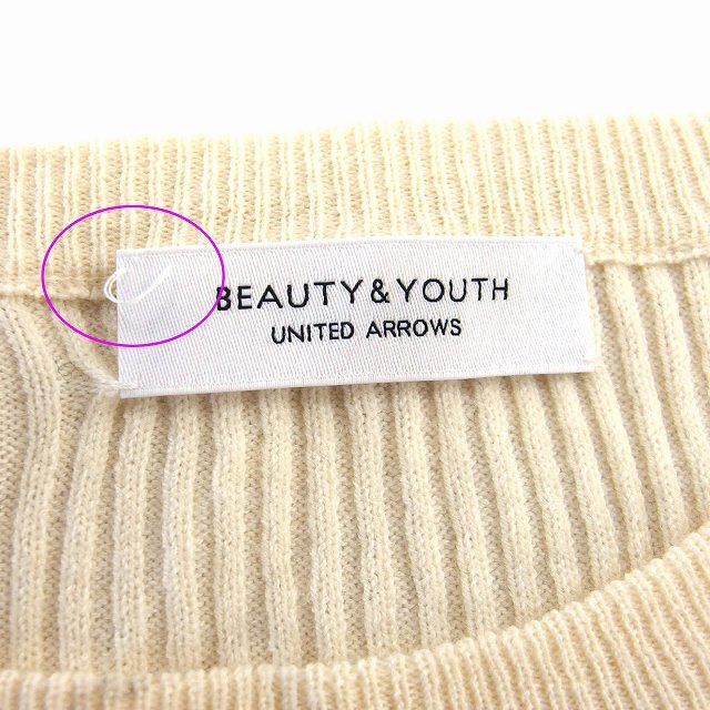 B&Y ユナイテッドアローズ BEAUTY&YOUTH ビューティー&ユース ニット セーター 長袖 丸首 リブ クリーム /HT16 レディース