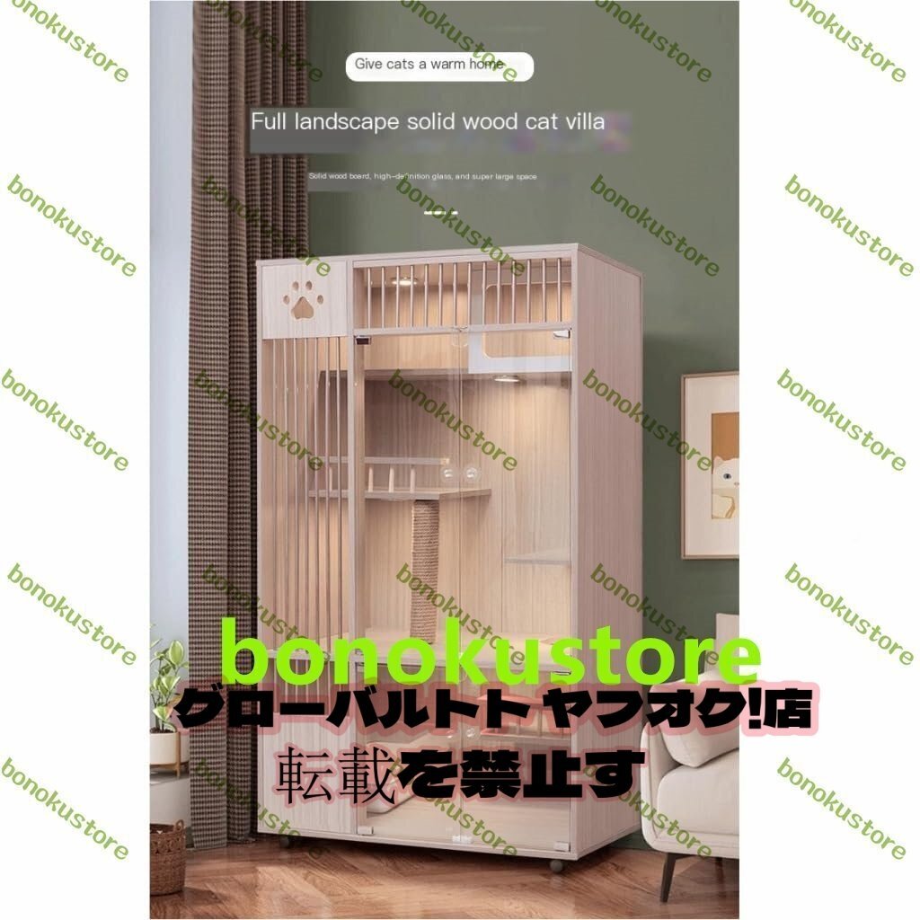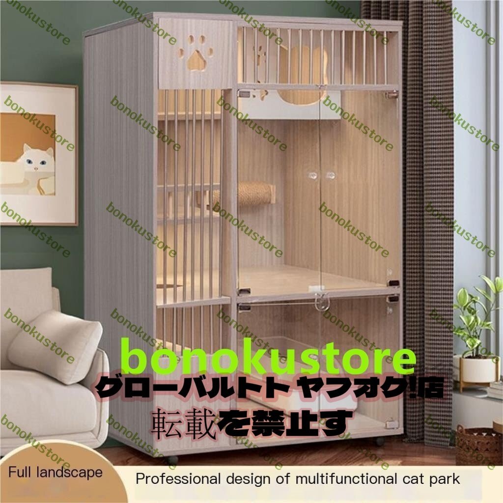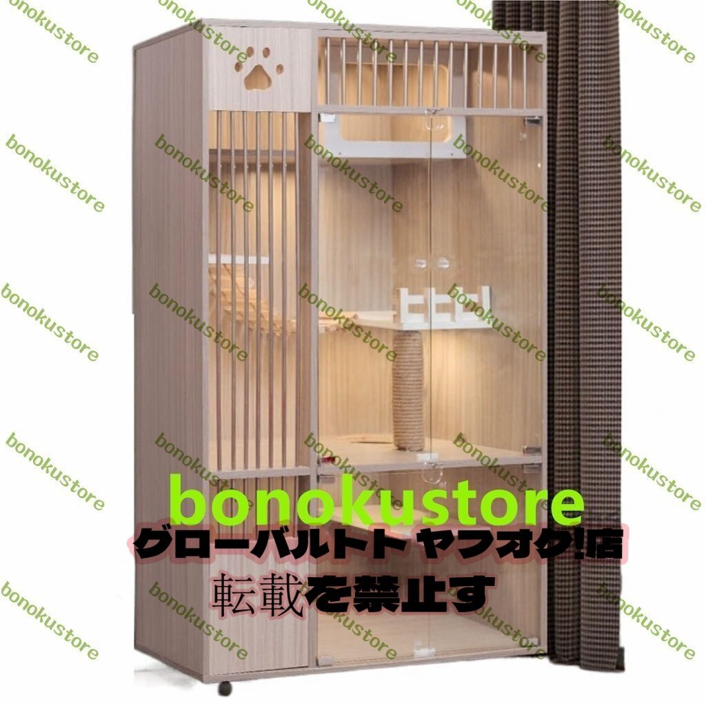 猫の家 無垢材の猫ケージ 猫の別荘 猫ケージ 木製 2階建てと3階建ての大型キャタリー 高級猫キャビネットディスプレイ 猫 家(B 90*60*150cm)