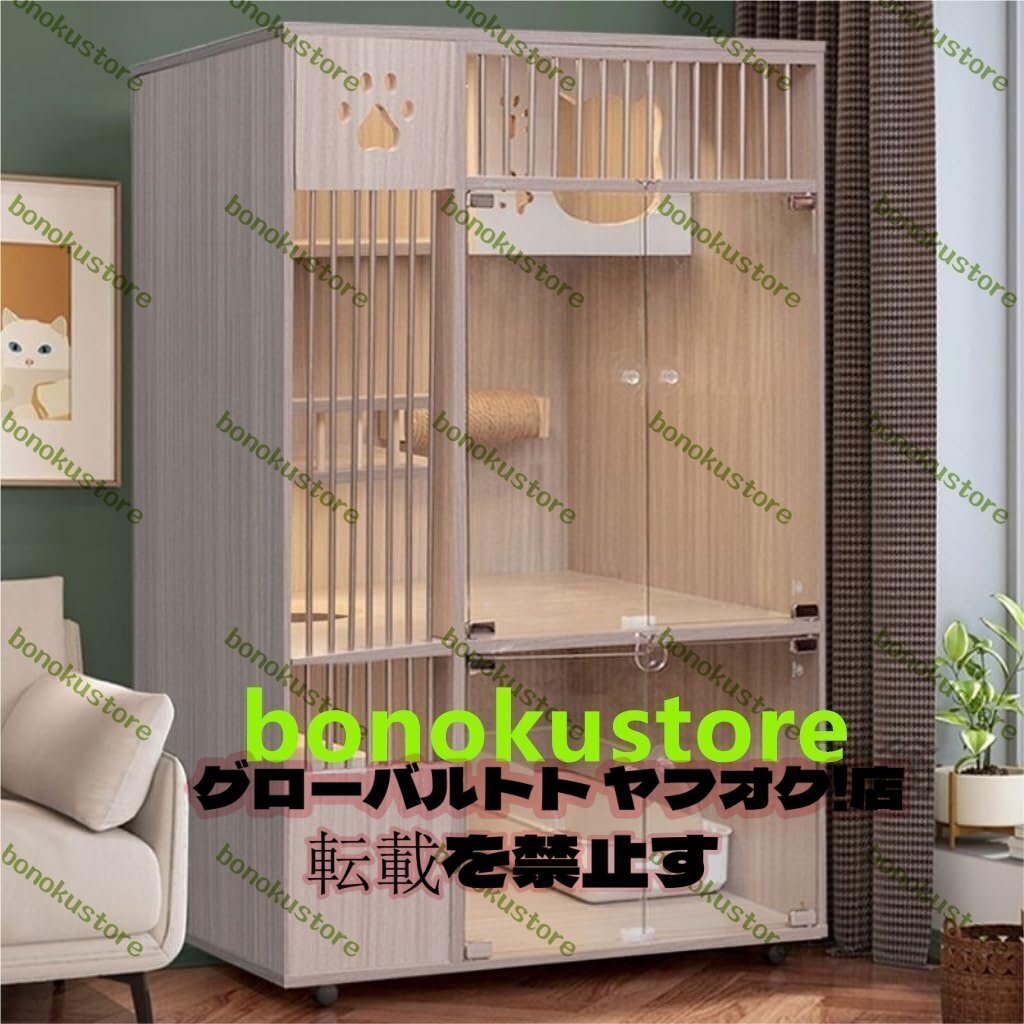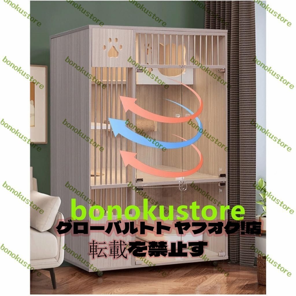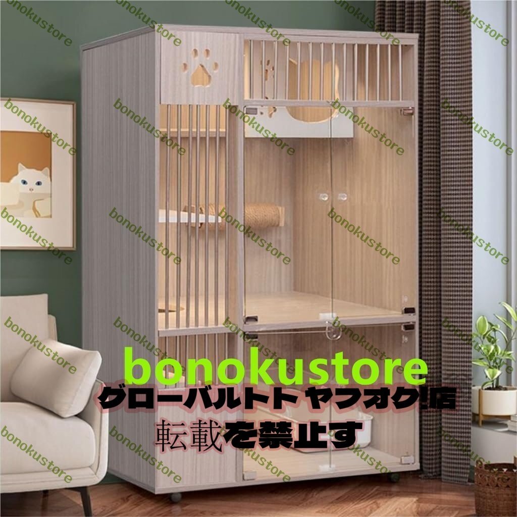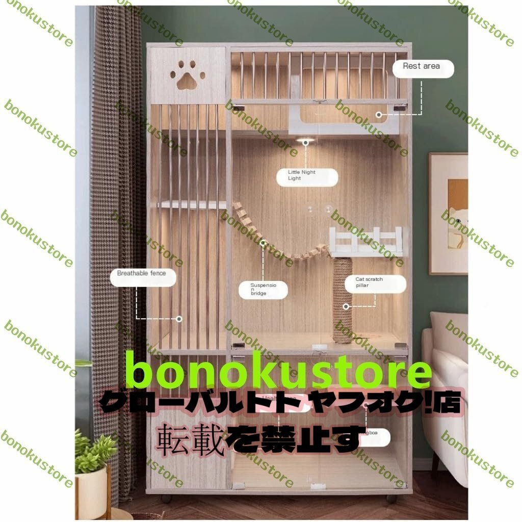 猫の家 無垢材の猫ケージ 猫の別荘 猫ケージ 木製 2階建てと3階建ての大型キャタリー 高級猫キャビネットディスプレイ 猫 家(B 90*60*150cm)