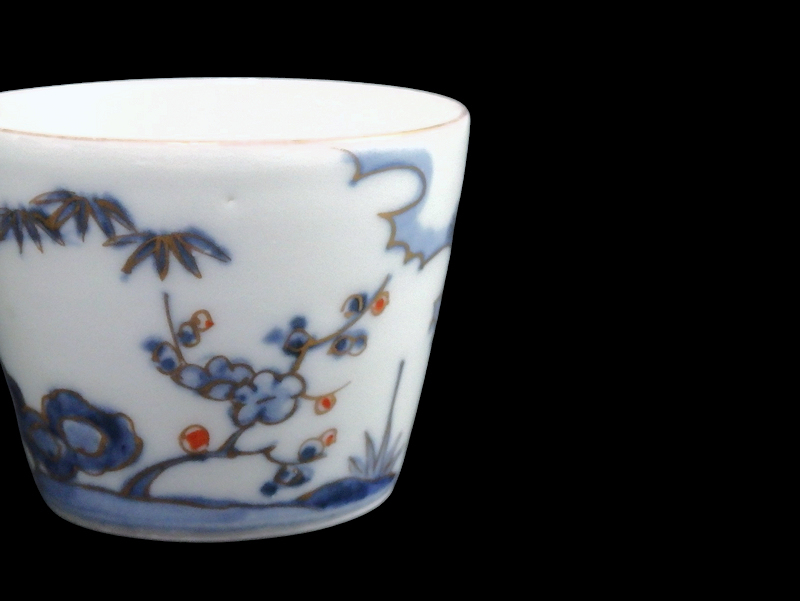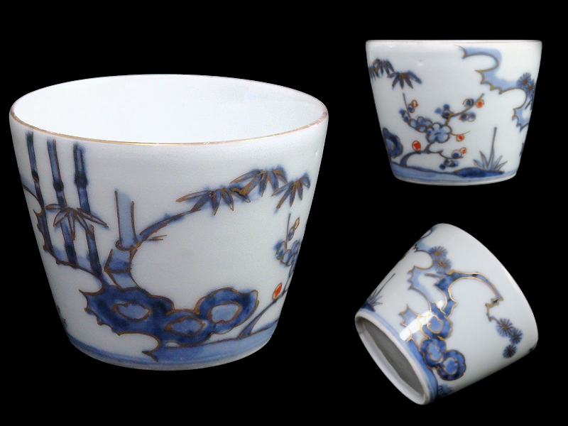 ★華心★ CXk-C177mS 古伊万里 染錦 太湖石に松竹梅の図 蕎麦猪口