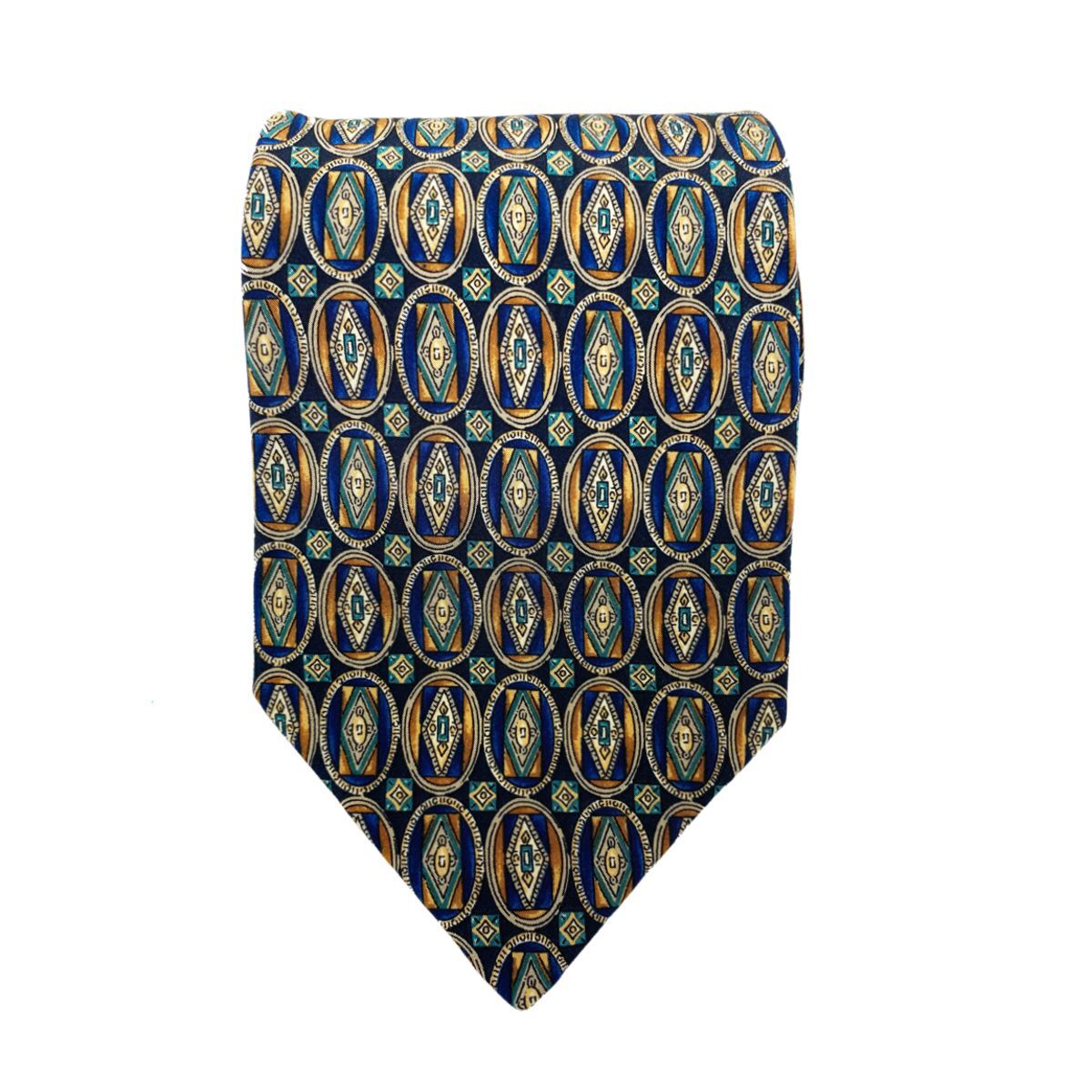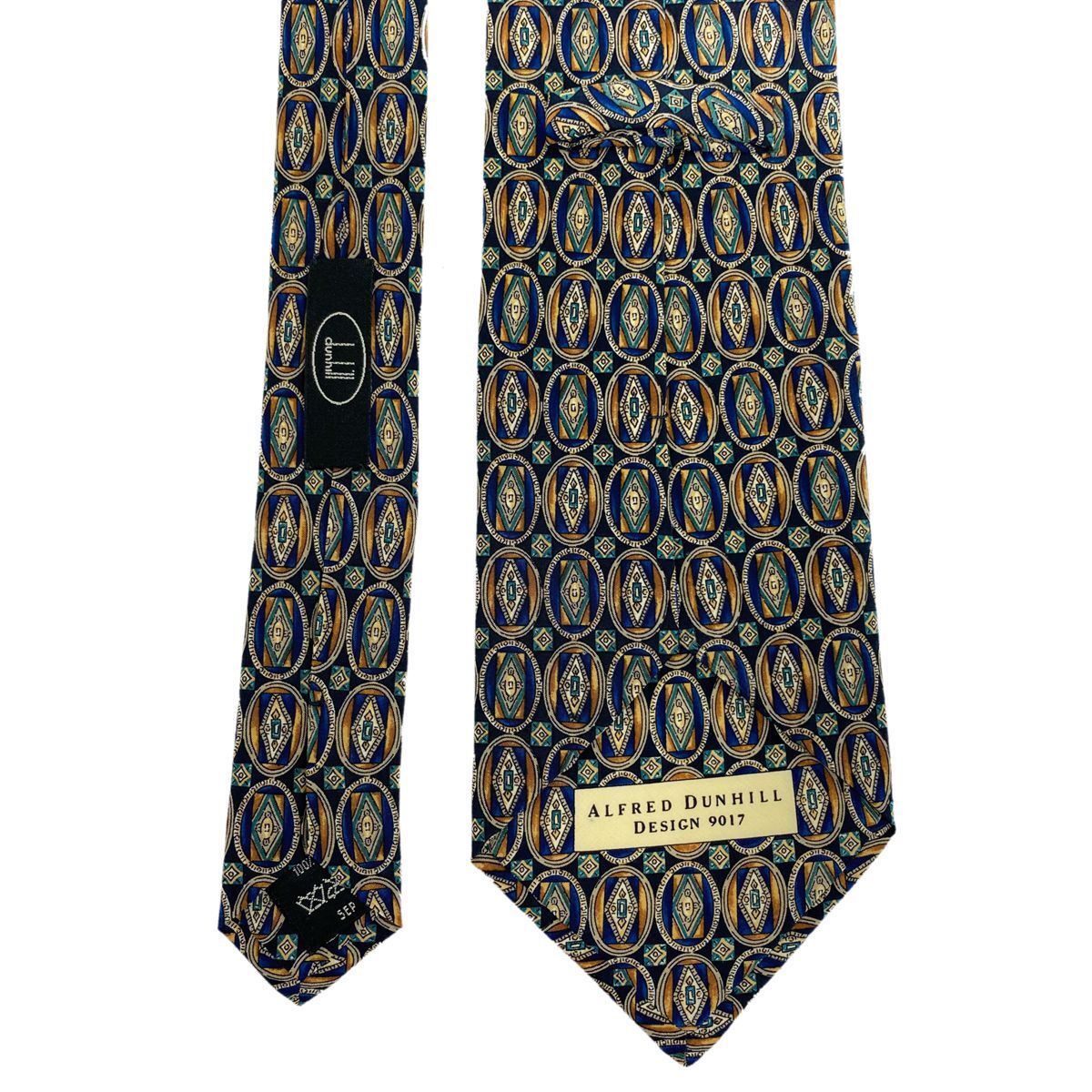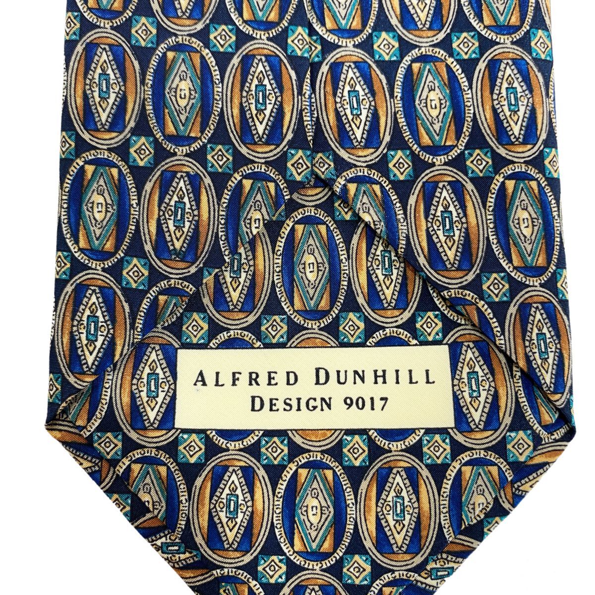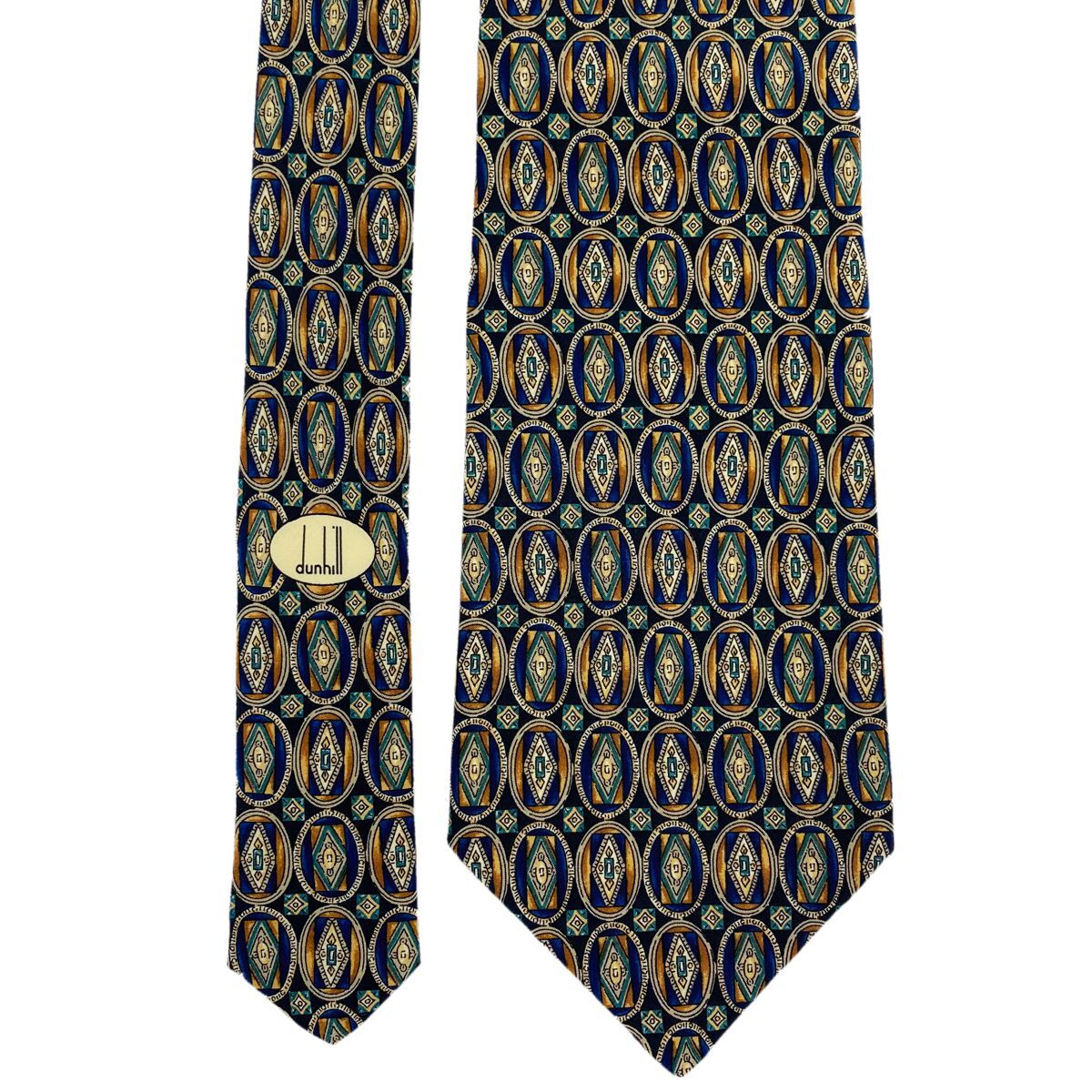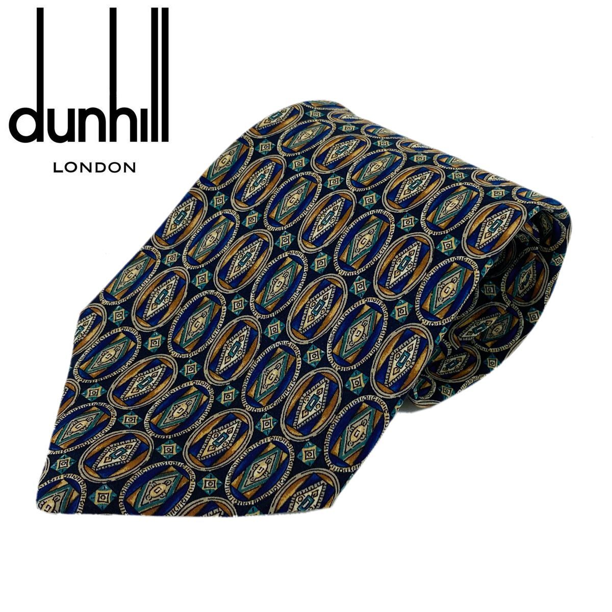 ■送料無料■未使用【dunhill ダンヒル】ネクタイ イタリア製 MADE IN ITALY シルク 高級ブランド メンズ ブルー ブラウン 幾何学柄