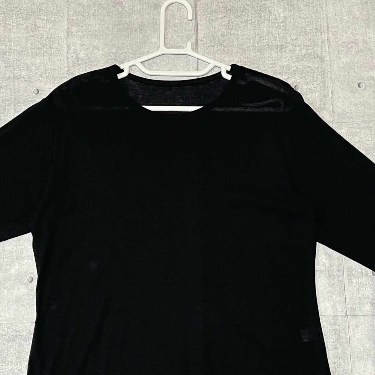 極美品 シャルレ 7分袖 カットソー Tシャツ ブラック 黒 ハイクオリティー  日本製 MADE IN JAPAN サラッとしたソフトな上質素材 早5030 使用感無い極上美品 無地 単色 シンプル 裾スリット