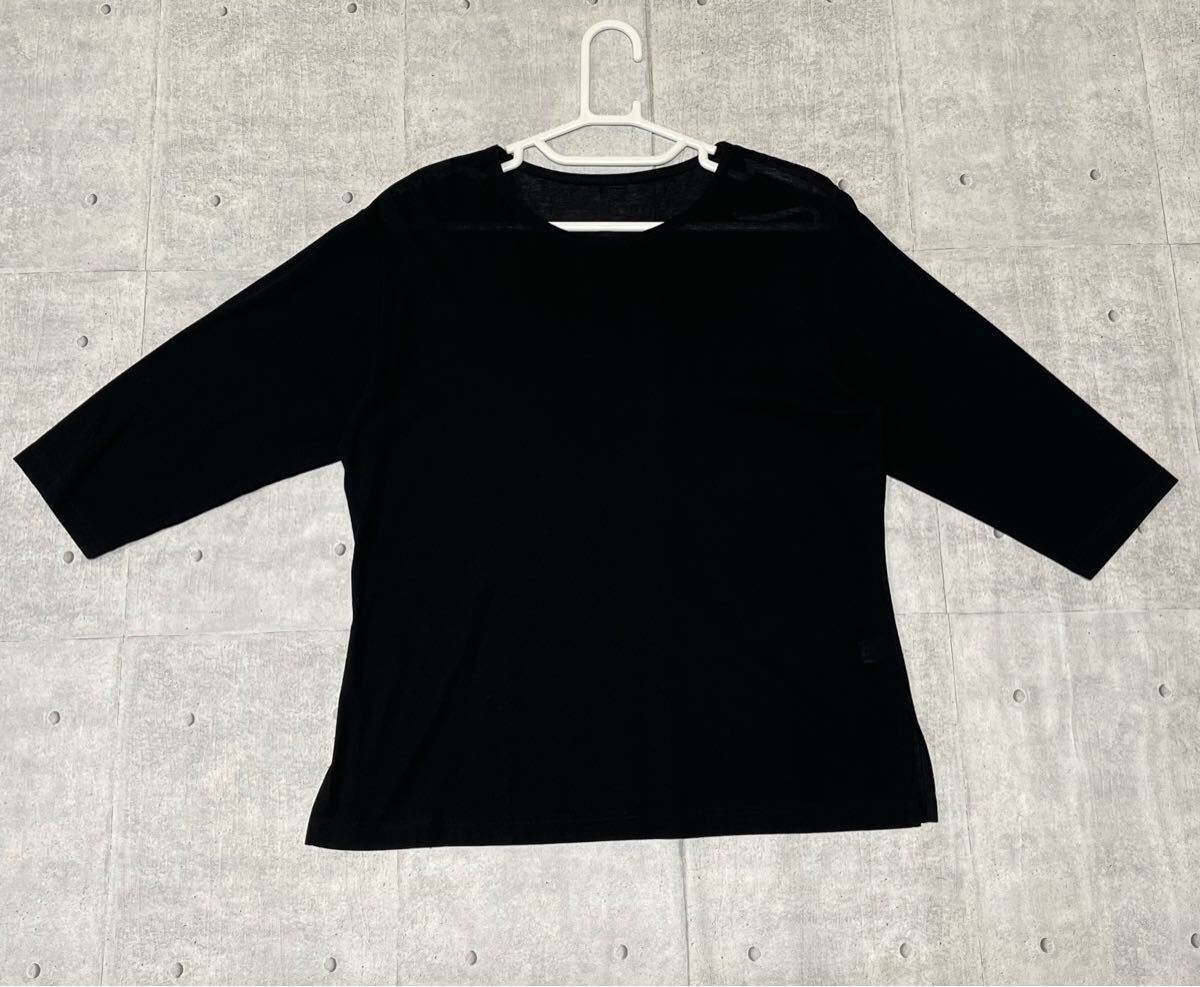 極美品 シャルレ 7分袖 カットソー Tシャツ ブラック 黒 ハイクオリティー  日本製 MADE IN JAPAN サラッとしたソフトな上質素材 早5030