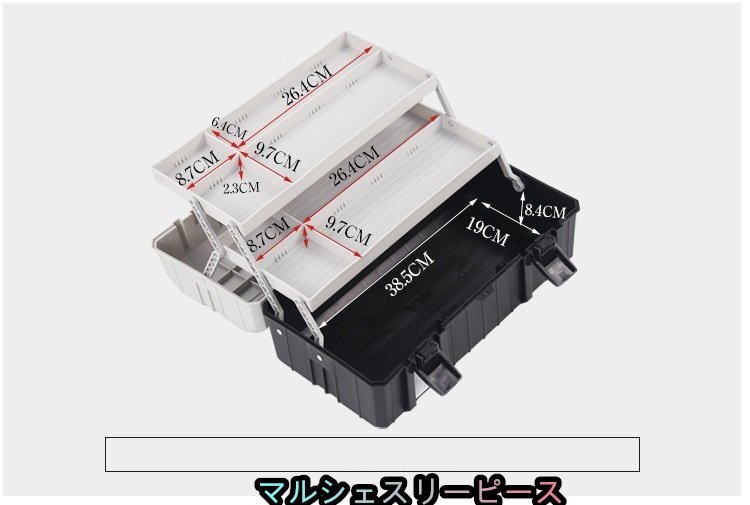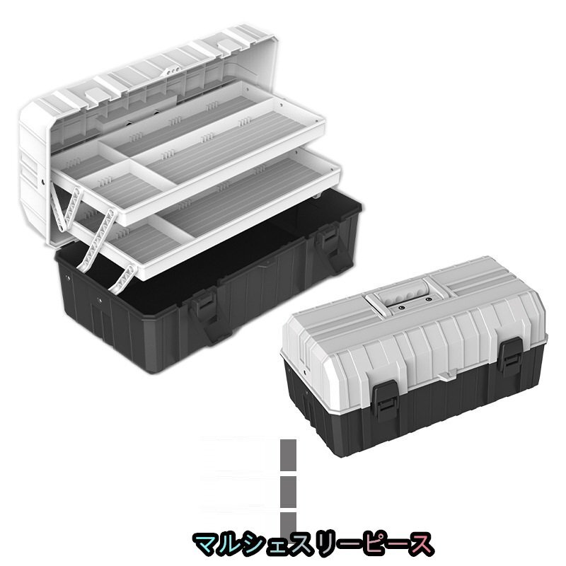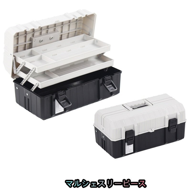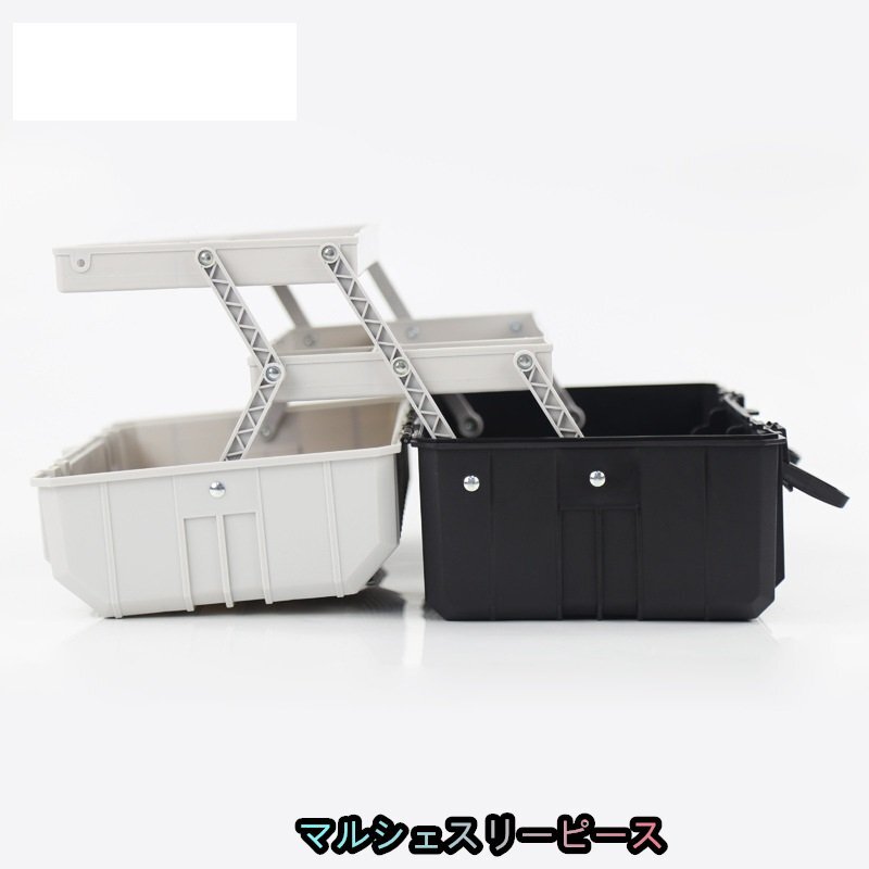 工具箱 ツールボックス 工具収納 収納ボックス 三段 大容量 取っ手付 工具入れ 移動が便利 折りたたみ式 道具箱 (グレーブラック)
