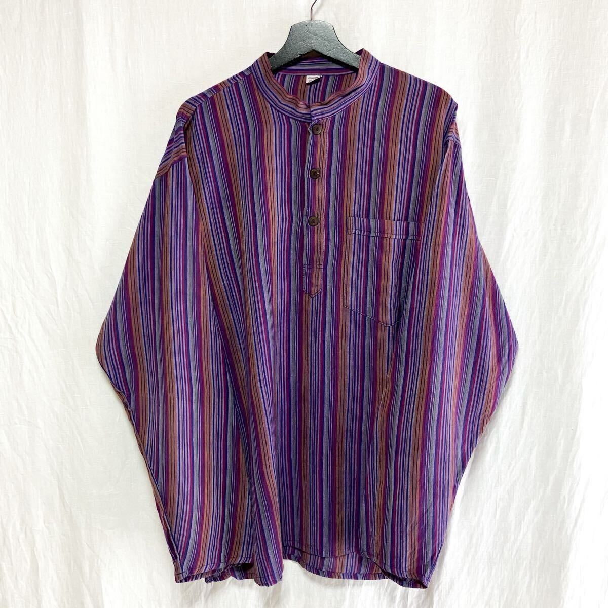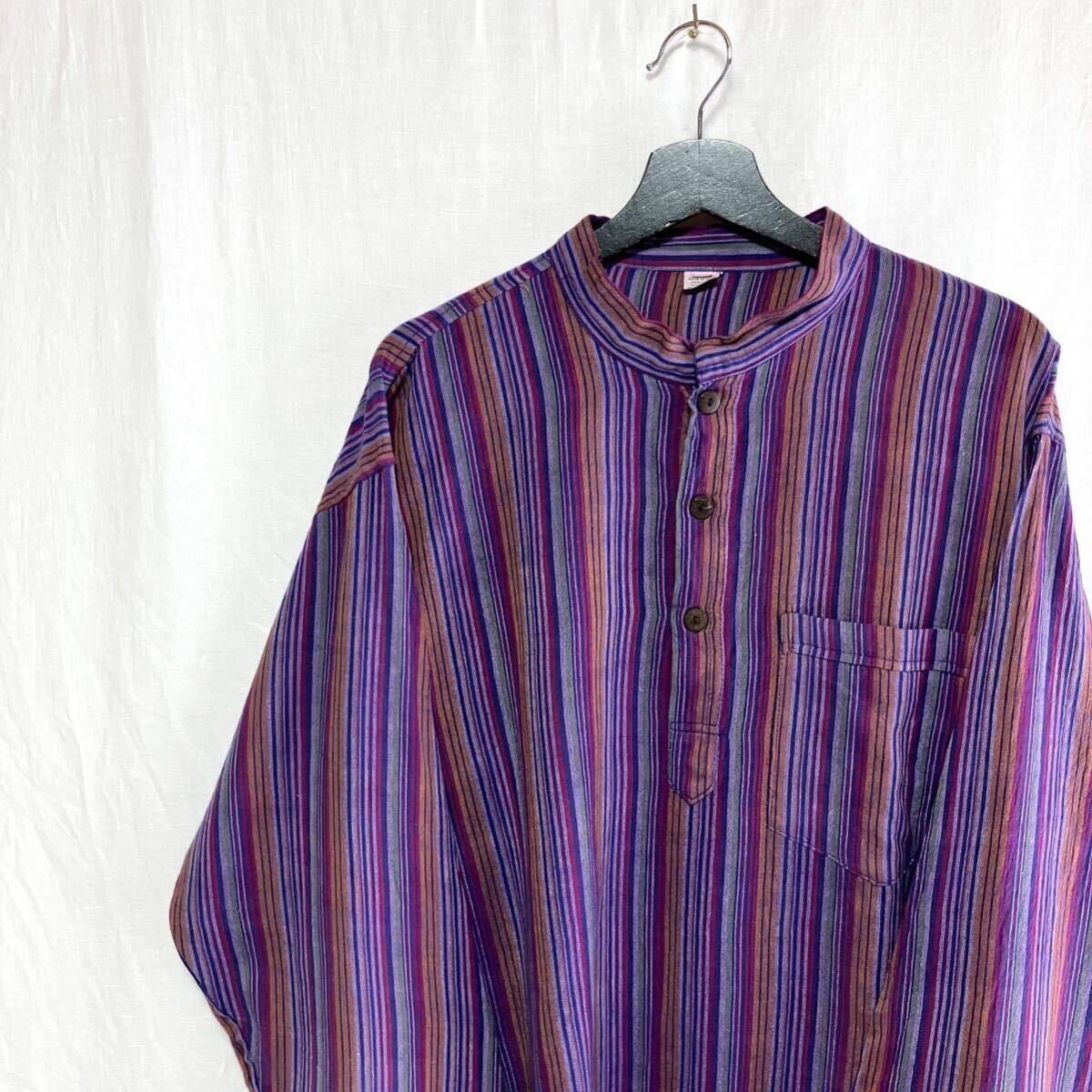 80s 90s ストライプ ネパールシャツ XXL相当 ヨーロッパ アメカジ 長袖 シャツ