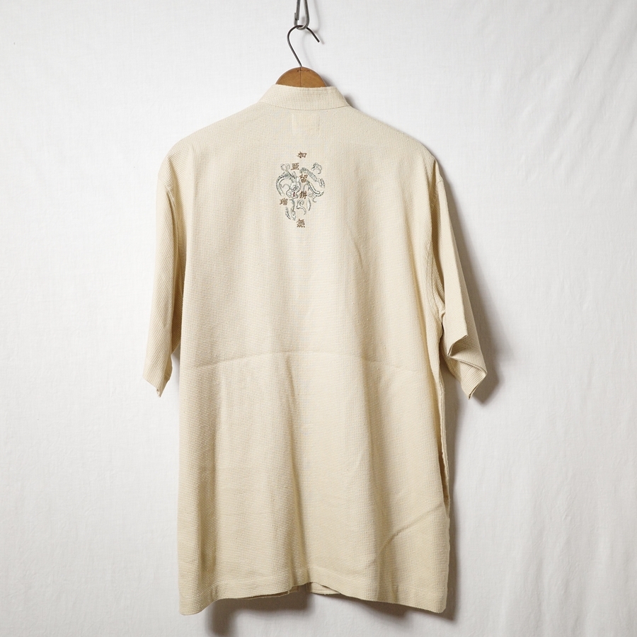 Karl Helmut カールヘルム ワッフル 和柄 半袖シャツ L / 漢字 龍 マオカラー ピンクハウス 日本製