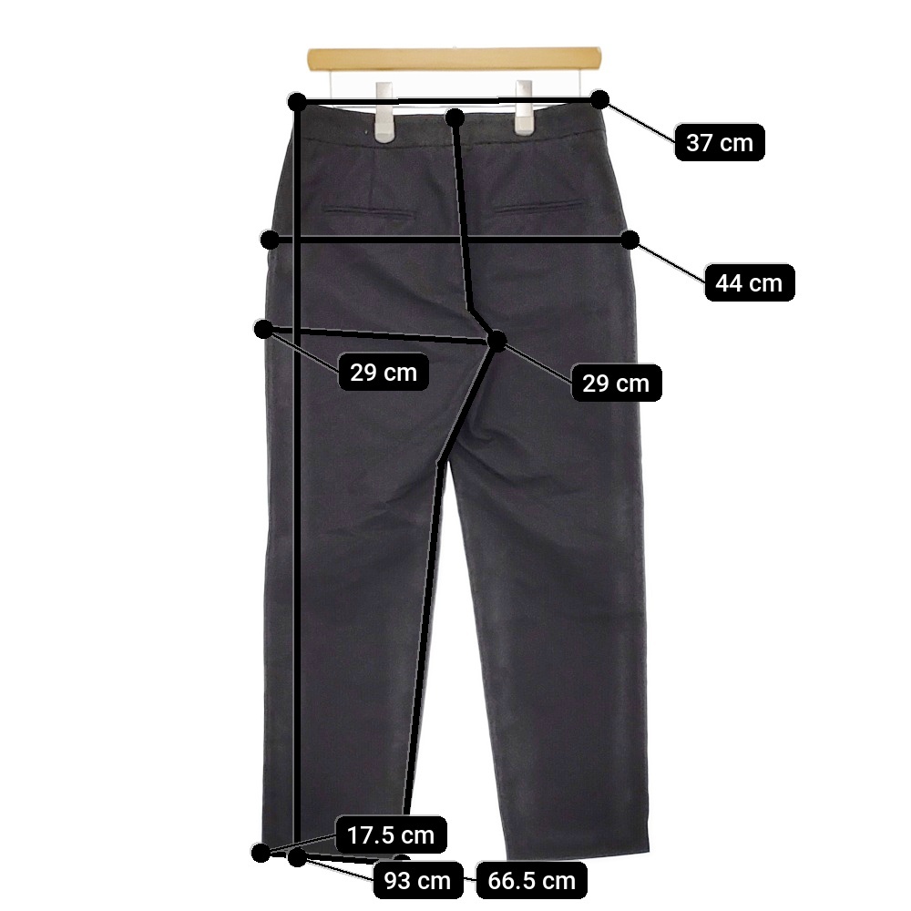実寸サイズ | 総丈:約93cm ウエスト:約37cm 股上:約29cm 股下:約66.5cm ヒップ:約44cm ワタリ幅:約29cm 裾幅:約17.5cm ※記載以外のサイズが合わないことを理由とした返品はできませんので、 記載部分以外で実寸サイズの気になる箇所があれば必ず購入前にご質問ください。 |