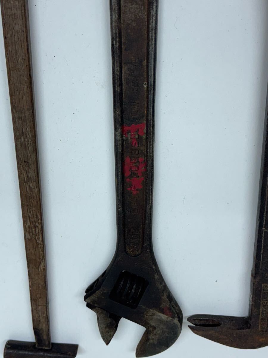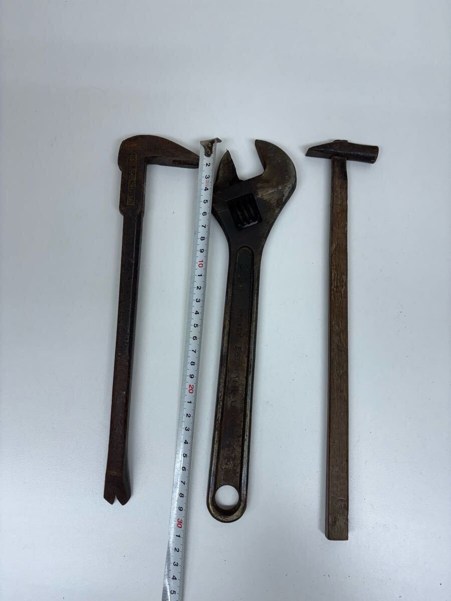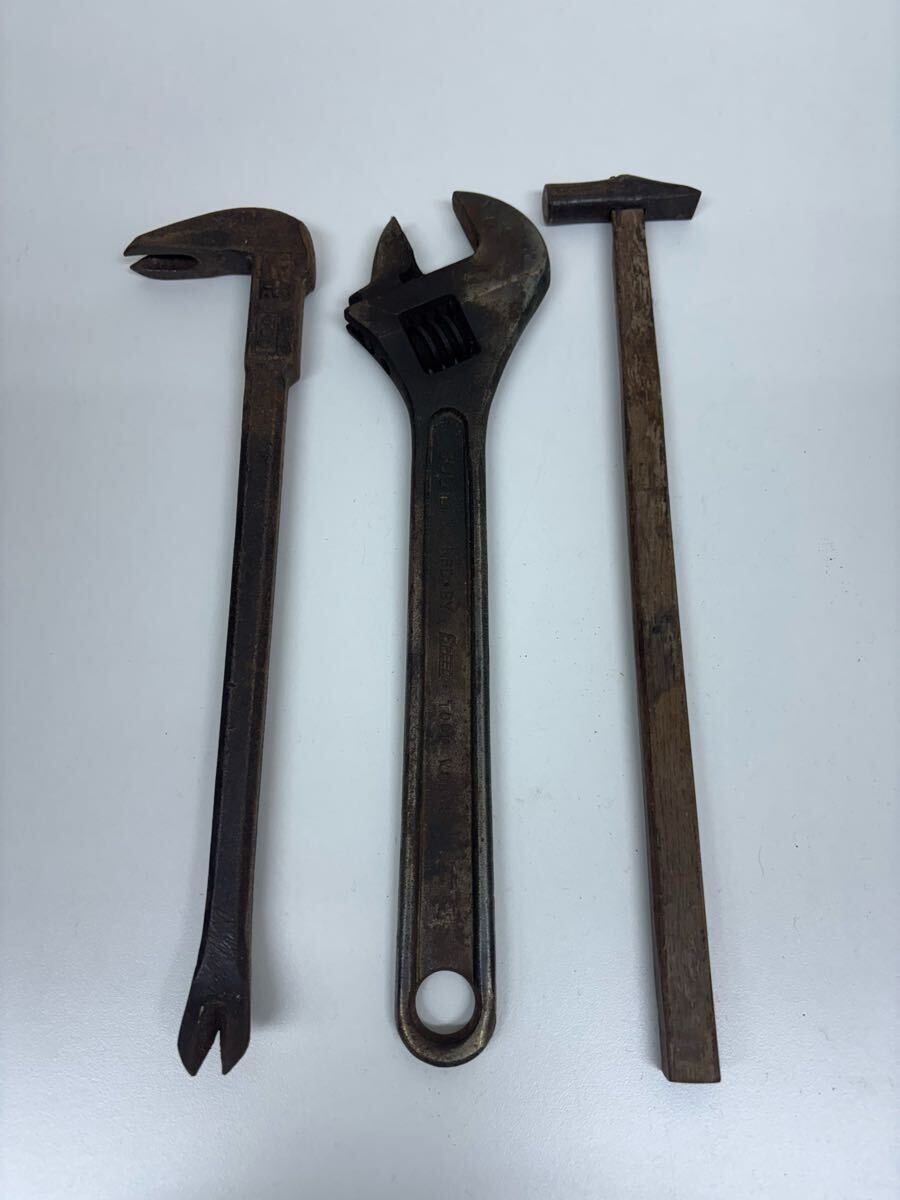 こちら、『■1-1 工具 3点 おまとめ モンキーレンチ ハンマー バール 金づち 大工道具 古道具 釘抜き ■』の出品ページでございます。