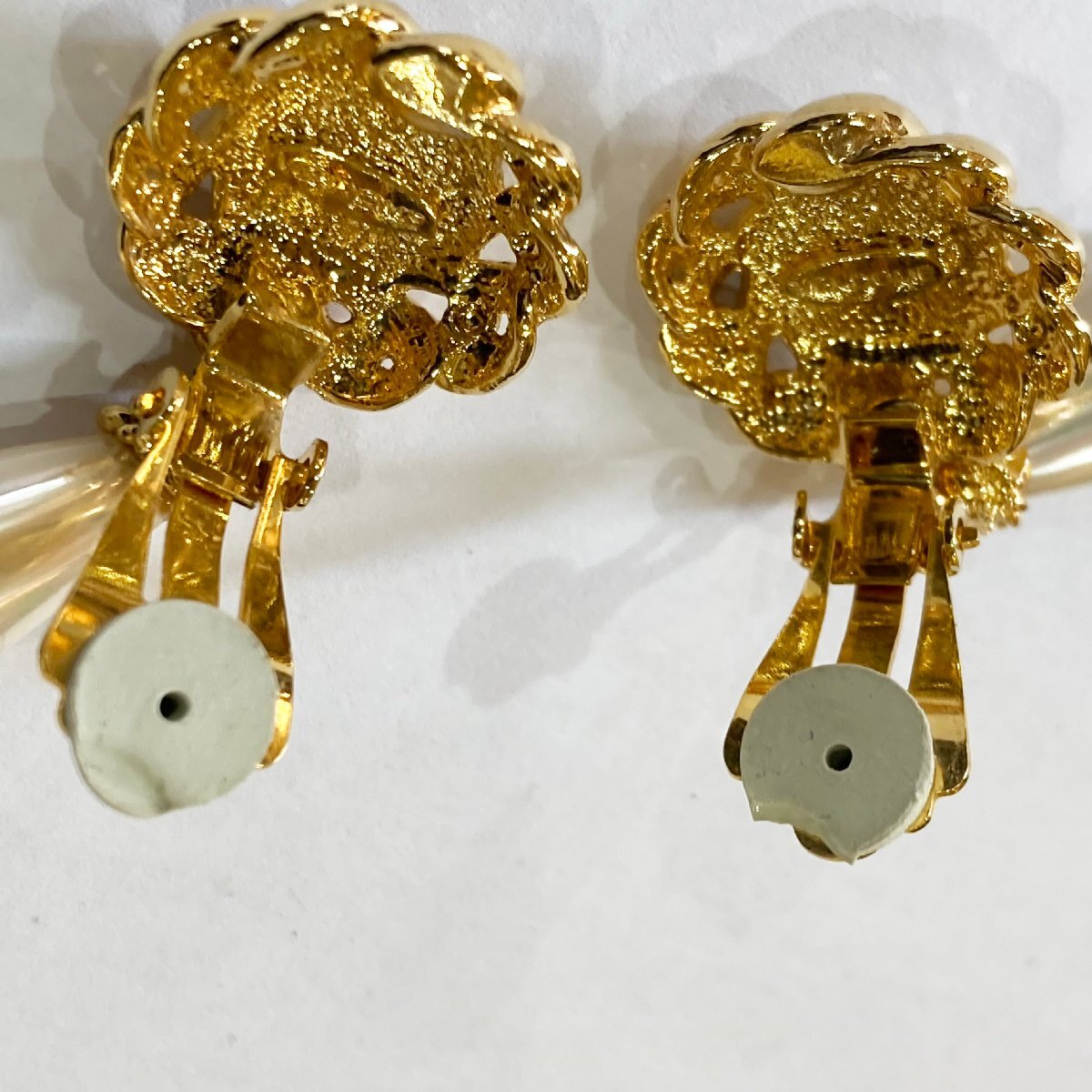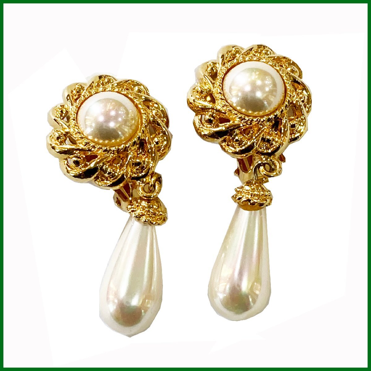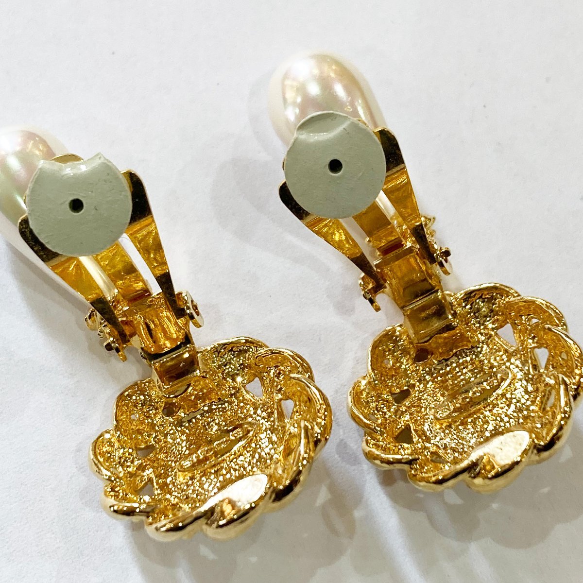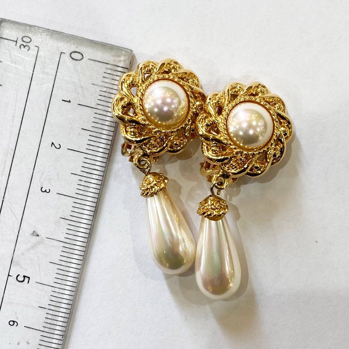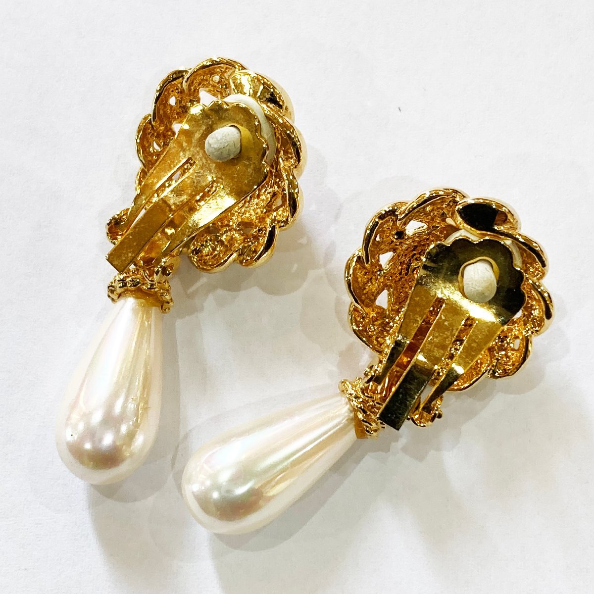 中古 ●Vendome/ヴァンドーム● イヤリング ヴィンテージ パール ドロップ ゴールド アクセサリー 刻印プレート有 札幌