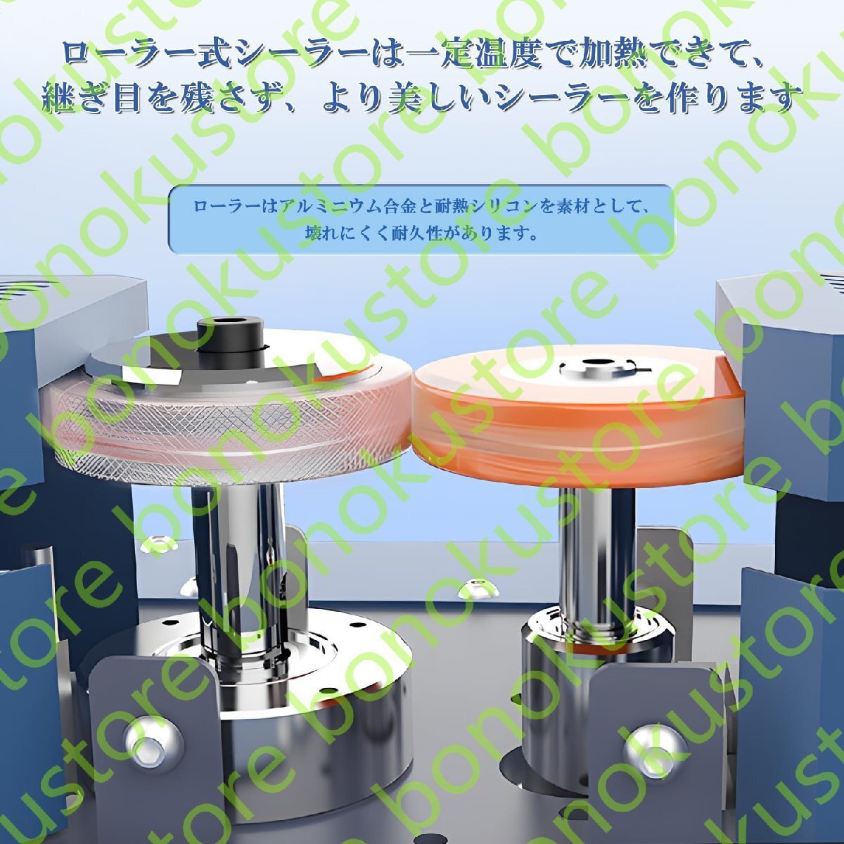 【デジタル表示・簡単な操作】 ディスプレイが搭載され、シーラー温度と速度が可視化し、簡単なノブ制御で異なる種類やサイズの袋に適切な速度と温度を選択できて、機械に苦手の初心者でもうまく使用できます。 【2CM昇降可能なロードテーブル】 全自動シーラー機はロードテー