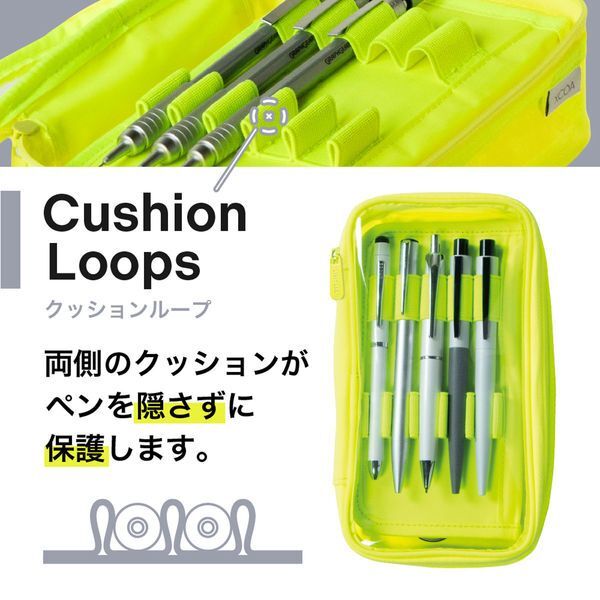 ○透明のフタからペンが見えるクリヤータイプのペンケース