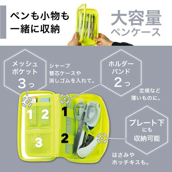 ・メッシュポケット:シャープ替芯ケースや消しゴムを入れて。