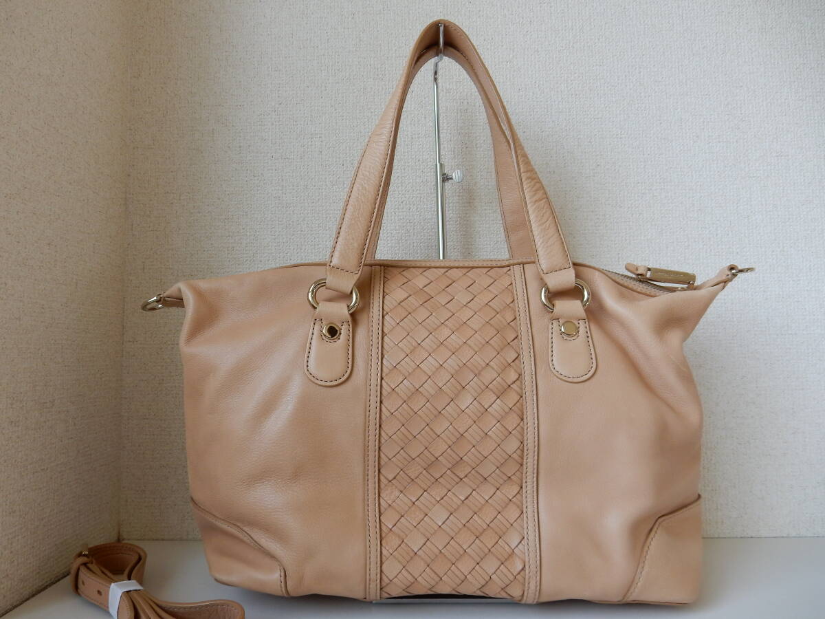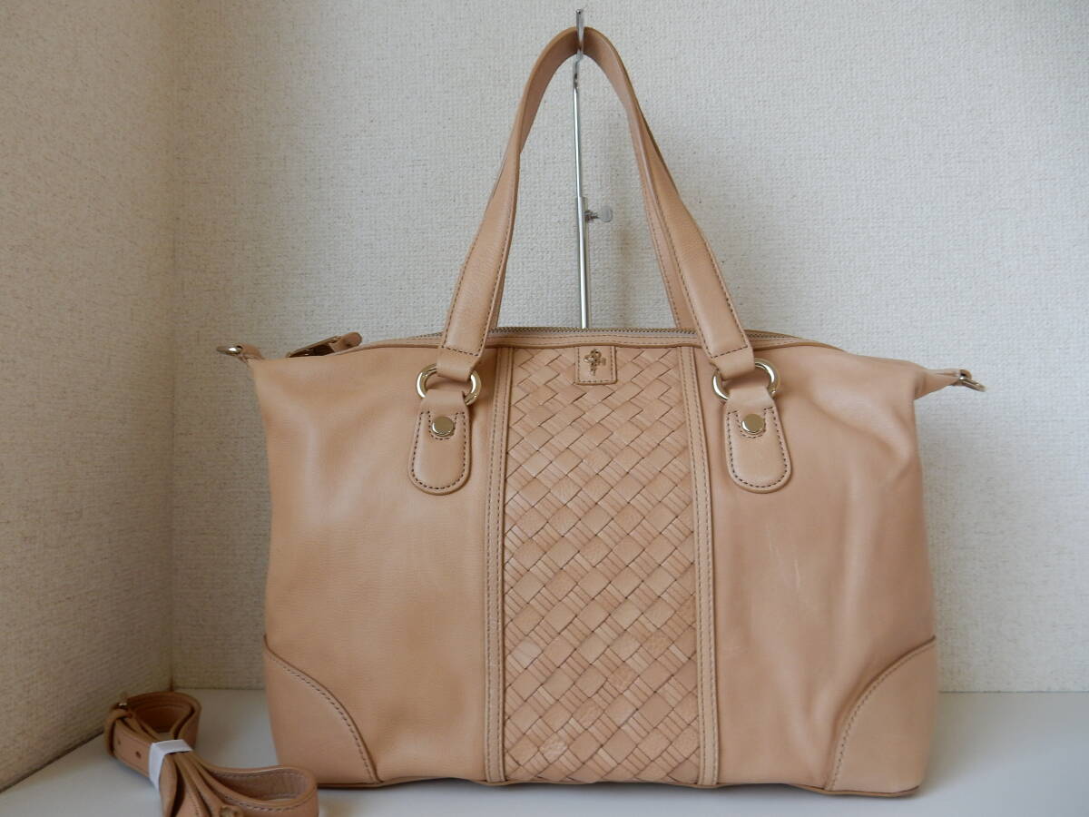 本革☆COLE HAAN(コール・ハーン)☆A4対応☆2WAYトートバッグ(ショルダーベルト付き)ベージュ(金具ゴールド)