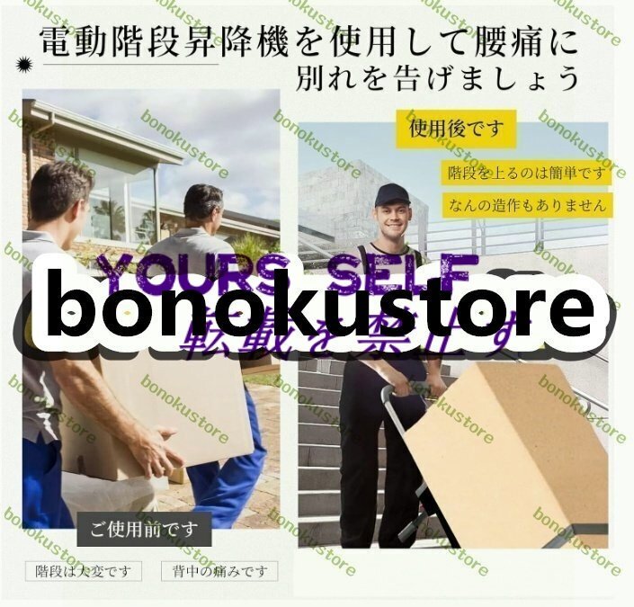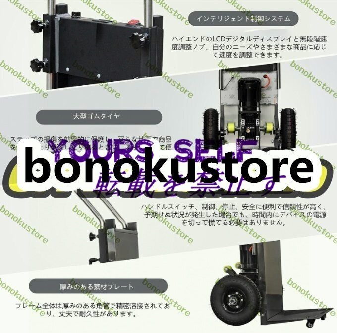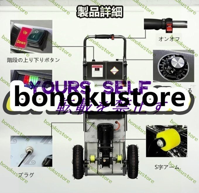 商品説明 商品説明 【商品詳細】★状態:新品未使用【速度調整可能 & 2大型空気入りタイヤ】この電動台車階段昇降速度を調節可能、低速ギアは 24 ステップ/分、高速ギアは 35 ステップ/分です、さまざまな貨物輸送ニーズに対応。電動階段運搬車2本の大型空気入りタイヤを