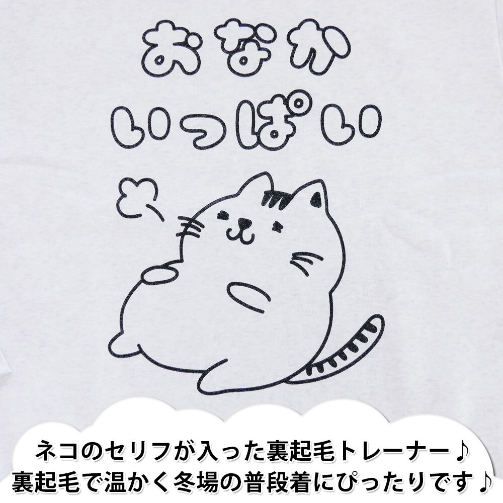 正規店仕入れの新品未使用品です ポリエステル素材で、吸汗速乾に優れます ネコのセリフが入った裏起毛トレーナー 裏起毛で温かく冬場の普段着にぴったりです |