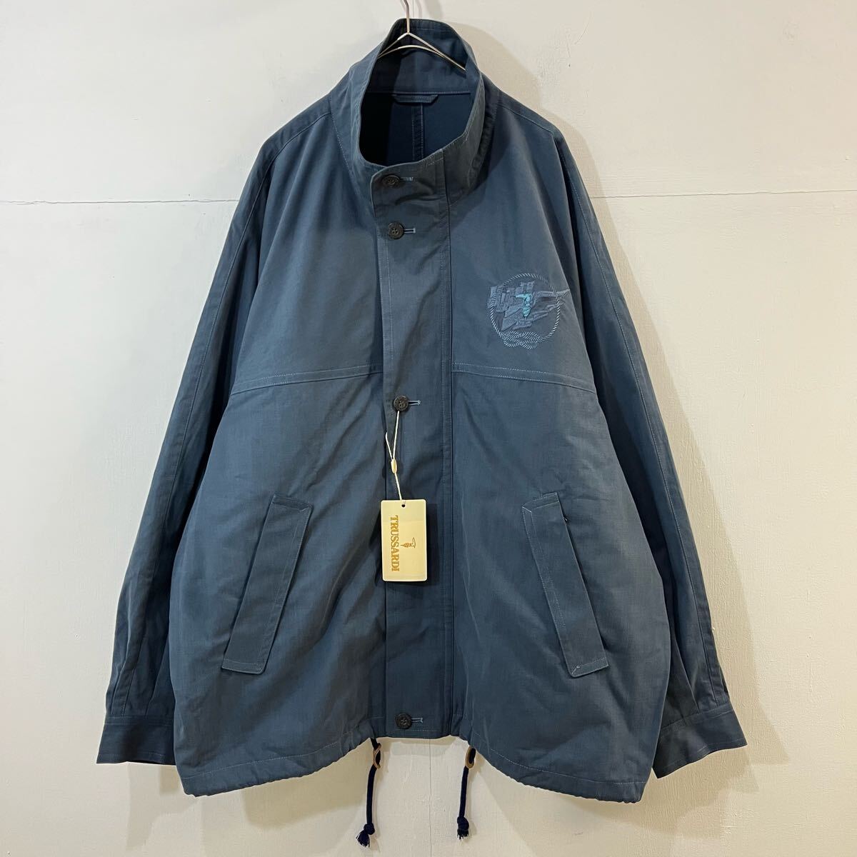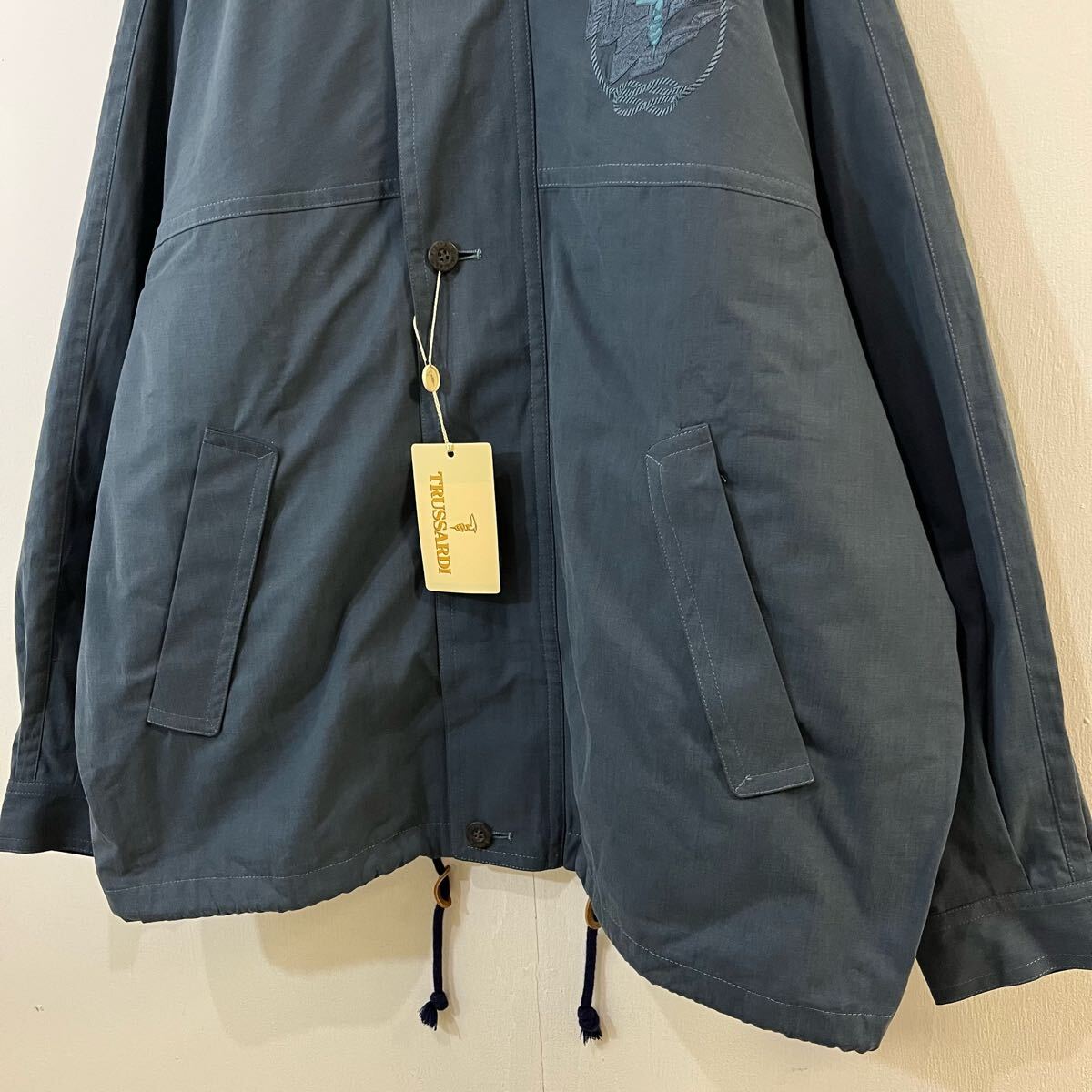 新品未使用タグ付き TRUSSARDI ブルゾン ジャケット ジップアップ ボタン 刺繍ロゴ ワンポイント 極上 トラサルディ【送料一律/同梱可能】Cの出品です。