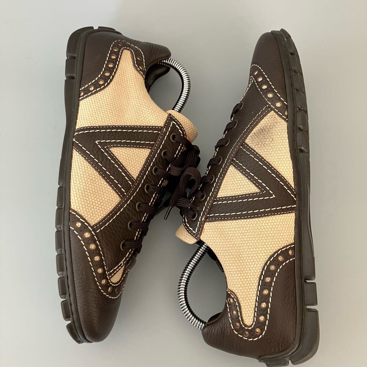 ●使用感少 LOUIS VUITTON ルイヴィトン レザー × キャンバス ローカットスニーカー/ドライビングシューズ/size(6.5)/茶/メンズ/イタリア