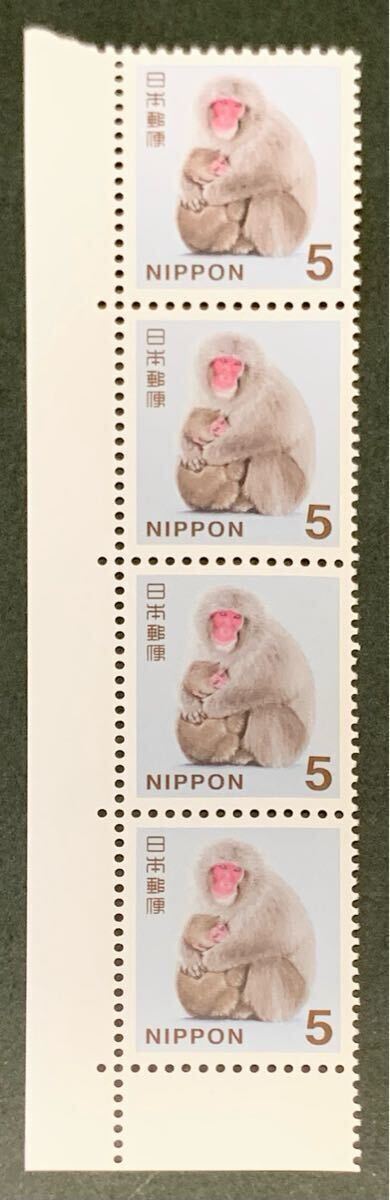●【新品】【美品】普通切手 4枚ブロック ニホンザル 5円 x 4枚 2014年シリーズ 匿名配送