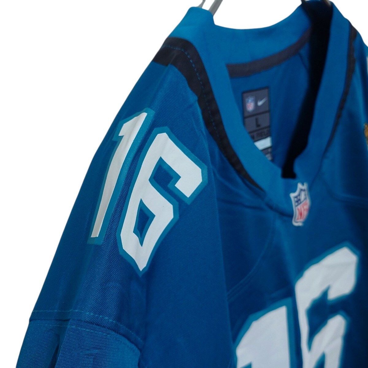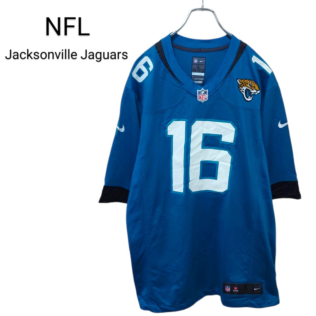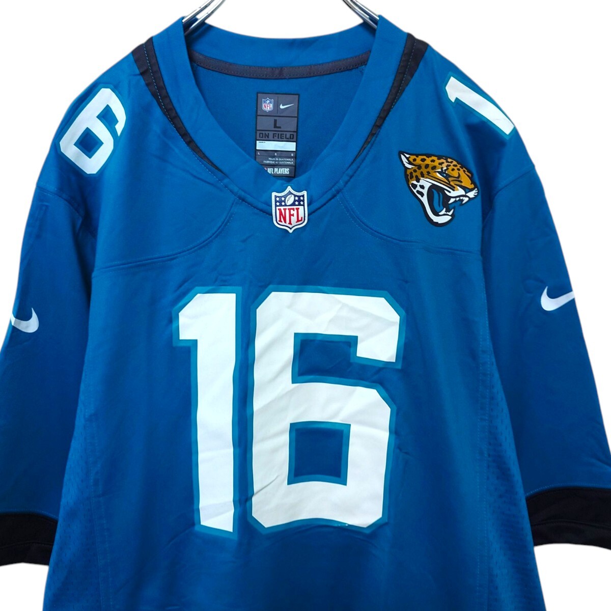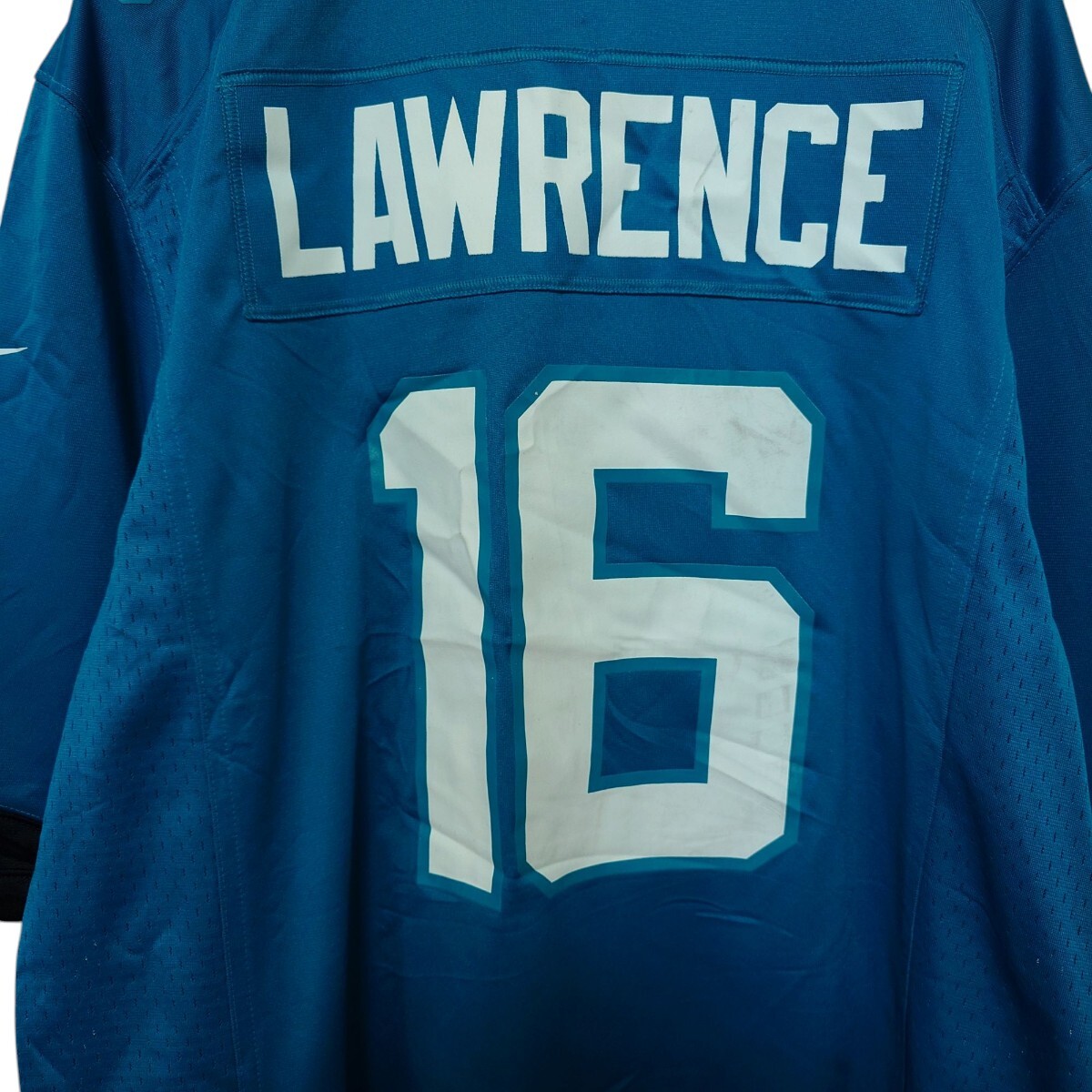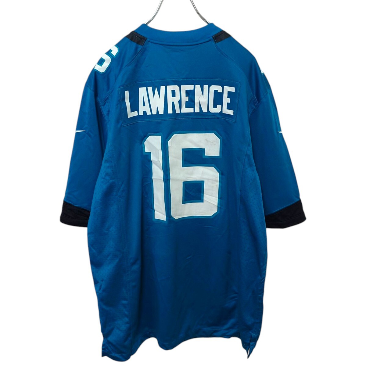 NFLのJacksonville Jaguars 16番William Trevor Lawrence(ウィリアム・トレバー・ローレンス)のフットボールゲームシャツです。
