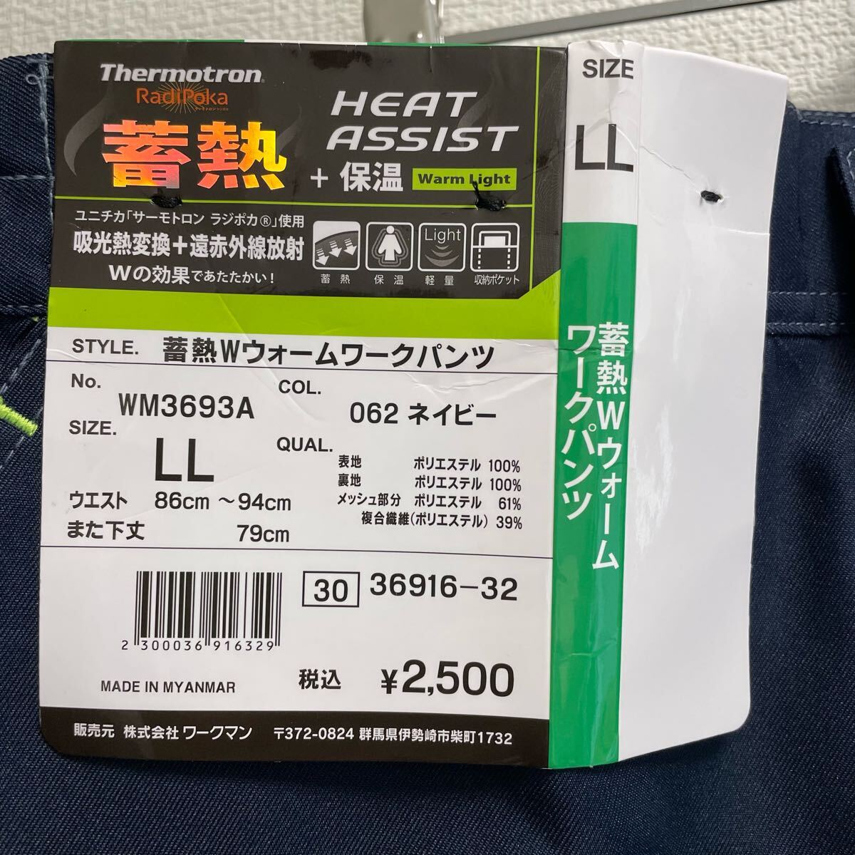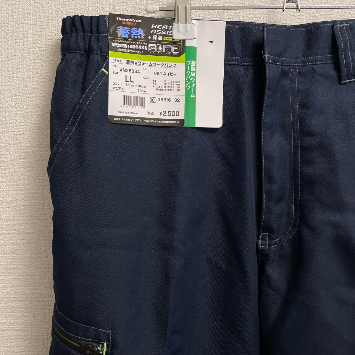 ★タグ付き未使用品 ワークマン 蓄熱Wウォームワークパンツ ネイビー LLサイズ 吸光熱変換+遠赤外線放射 保温 軽量
