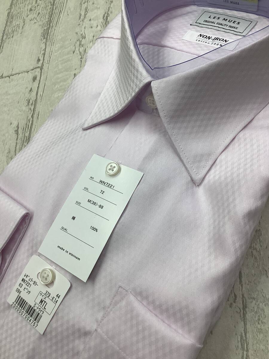 新品未使用 手の長い39-88★ 長袖Mサイズ ★ ピンク色 ★レギュラーカラー ★カッターシャツ★ドレスシャツ 定価4,990