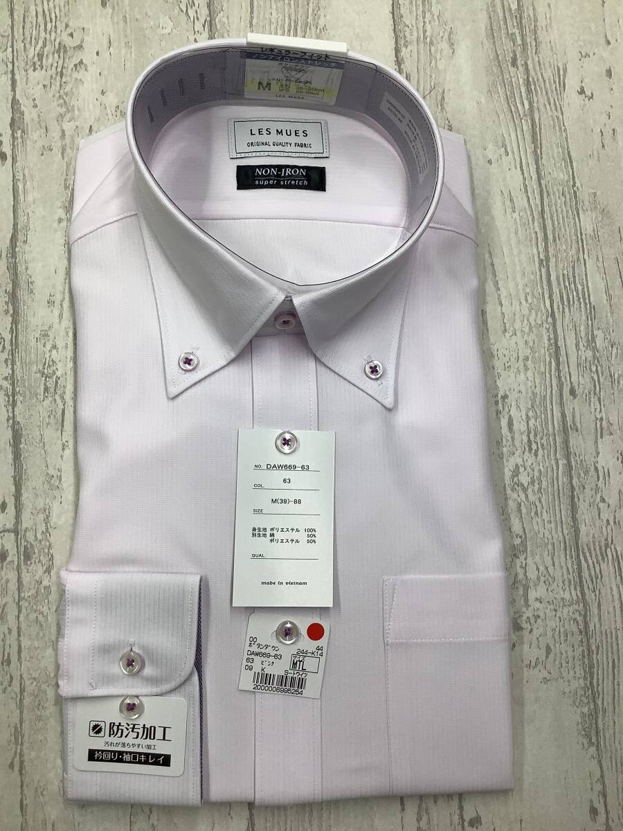 新品未使用★39-88 長袖Mサイズ ★ピンク無地 カッターシャツ ★ボタンダウン 定価4,990円 スーパーストレッチドレスシャツ