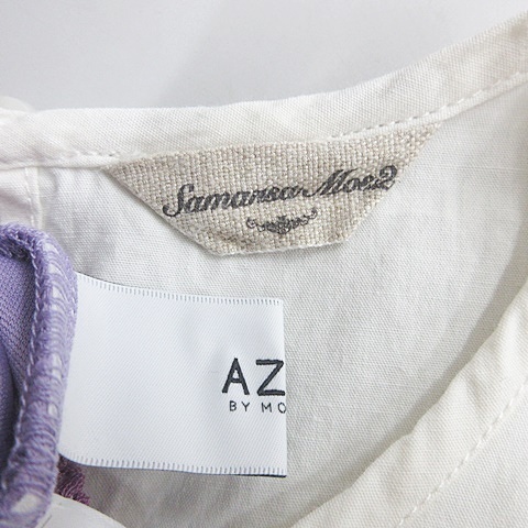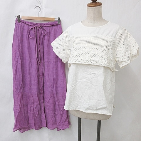 サマンサモスモス アズールバイマウジー ブラウス スカート 2枚セット 半袖 丸首 刺繍 ロング丈 フレア 白 紫 F M